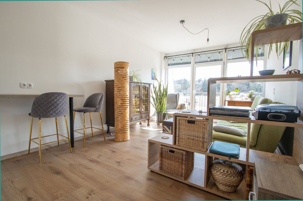 Der helle und sonnige Wohnbereich mit integrierter Einbauküche bietet ausreichend Platz und schafft ein angenehmes Wohngefühl.