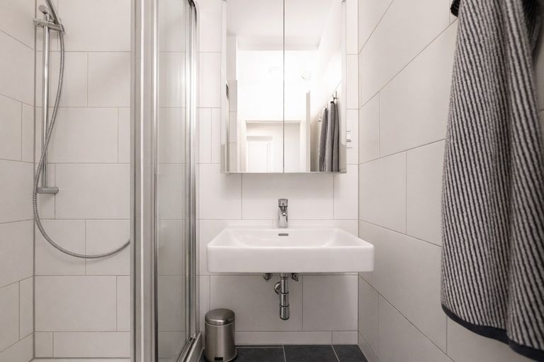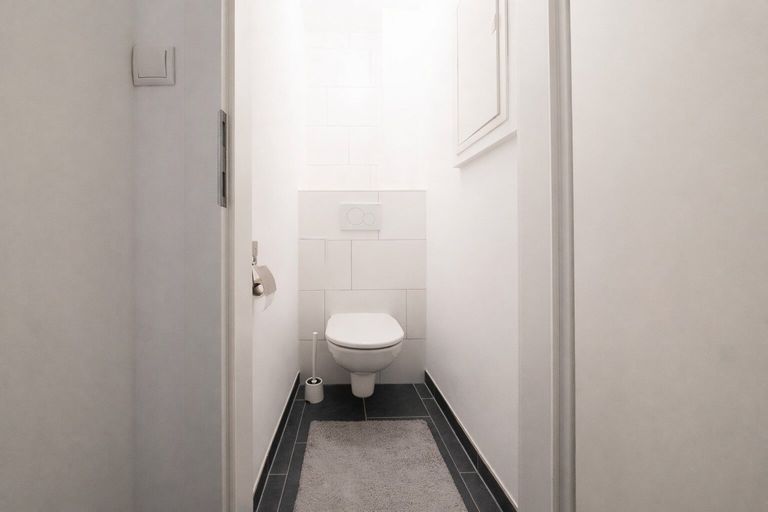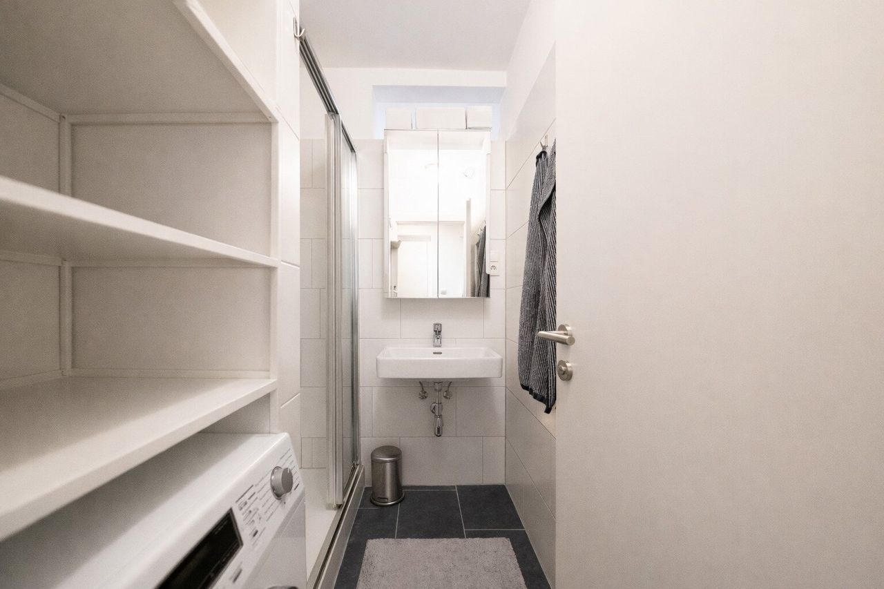 Die Raumaufteilung ist funktional und gut durchdacht: Über den Vorraum mit praktischer Abstellkammer gelangt man in das Badezimmer...