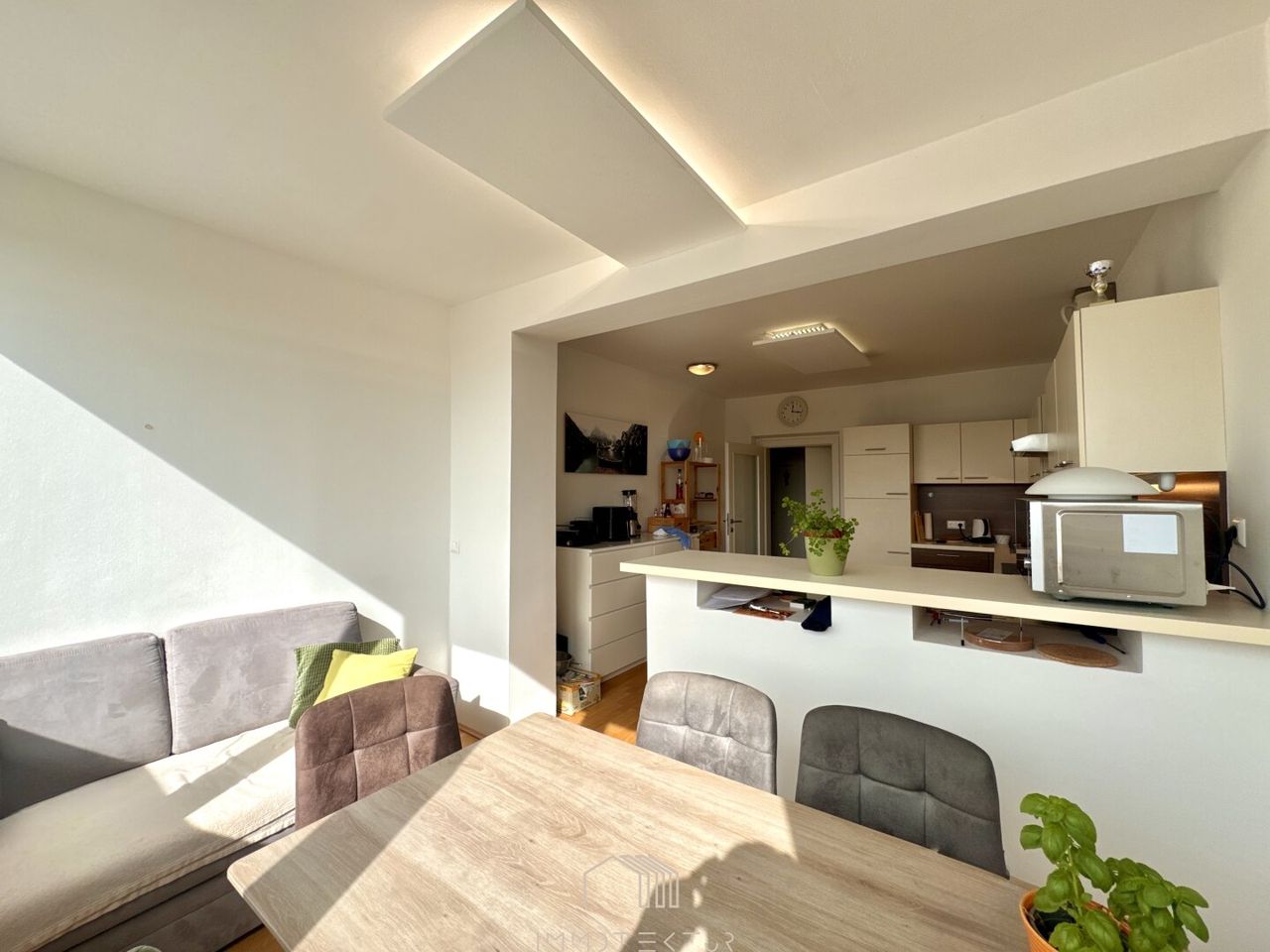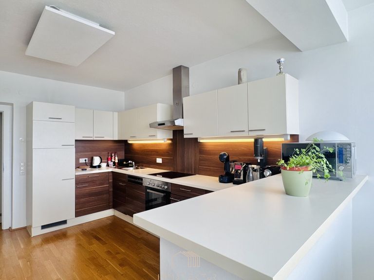 Das Herzstück der Wohnung ist die moderne Küche inkl. Essbereich. Ausgestattet mit modernen Geräten und viel Stauraum, bietet sie nicht nur Platz zum Kochen, sondern auch zum Zusammensitzen, Essen, Lachen – ein echter Lebensmittelpunkt. Ein angrenzender Abstellraum mit Einbauregalen sorgt für Ordnung und schafft zusätzlichen Stauraum, der im Alltag Gold wert ist.