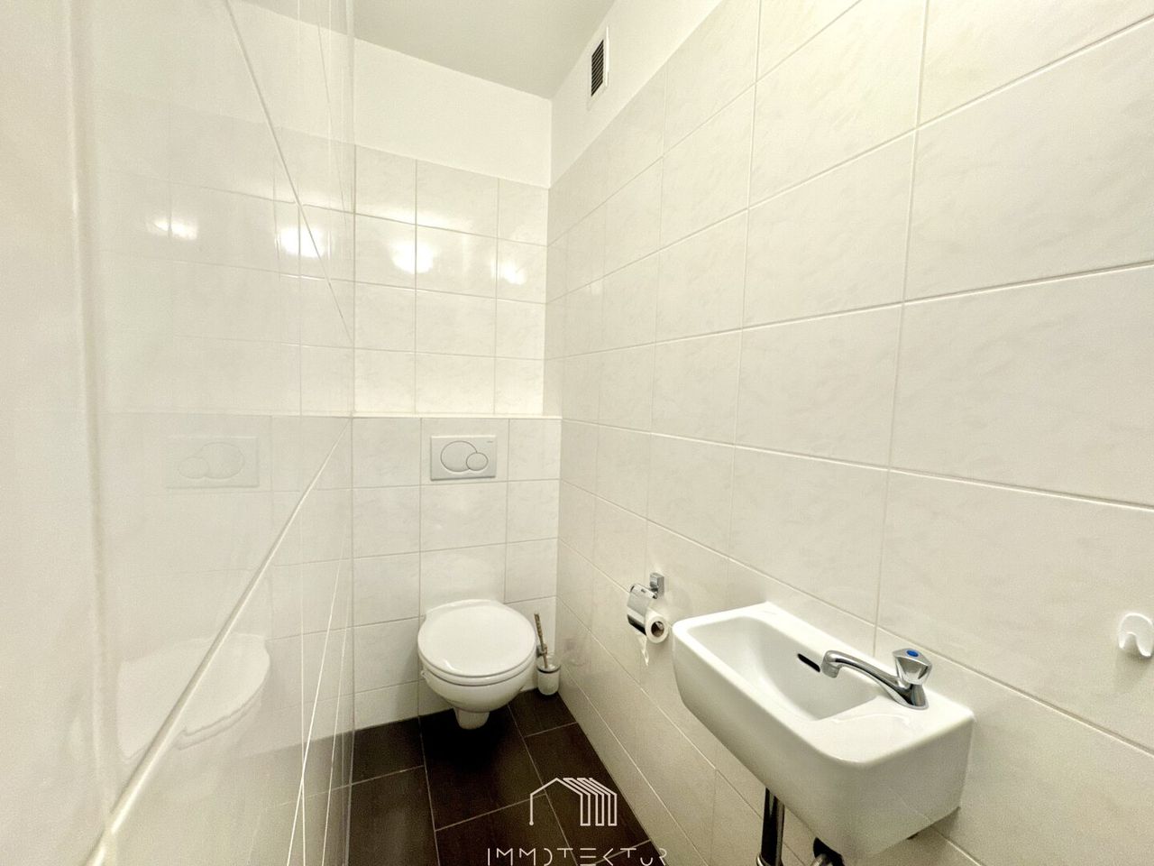 Das modernisierte Badezimmer überzeugt mit zwei Waschbecken, einem Waschmaschinenanschluss und klarer Linienführung. Zwei separate WCs bieten zusätzlichen Komfort. Der helle, weitläufige Flur eröffnet viele Möglichkeiten für individuelle Gestaltung: Ob Garderobe, Bücherregal oder praktischer Wäscheständer – hier findet alles seinen Platz.