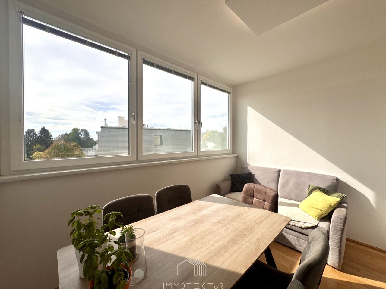 Der Balkon ist ein weiteres Highlight: sonnig gelegen und überdacht, lässt er sich nahezu ganzjährig nutzen – ein kleiner Rückzugsort mitten in der Stadt, ideal für den ersten Kaffee am Morgen oder ein entspanntes Glas Wein am Abend.