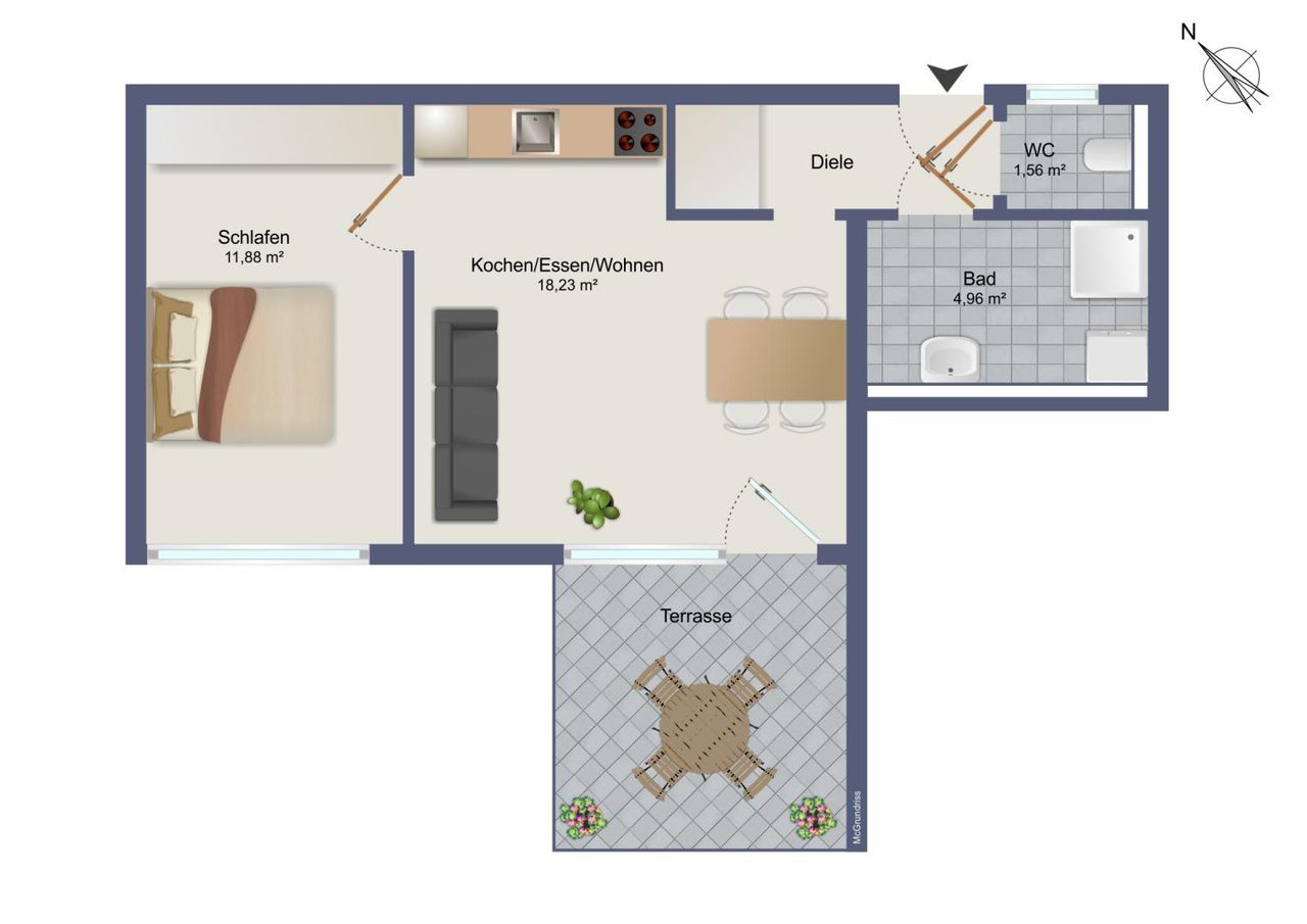 Die Raumaufteilung ist durchdacht und funktional gestaltet: