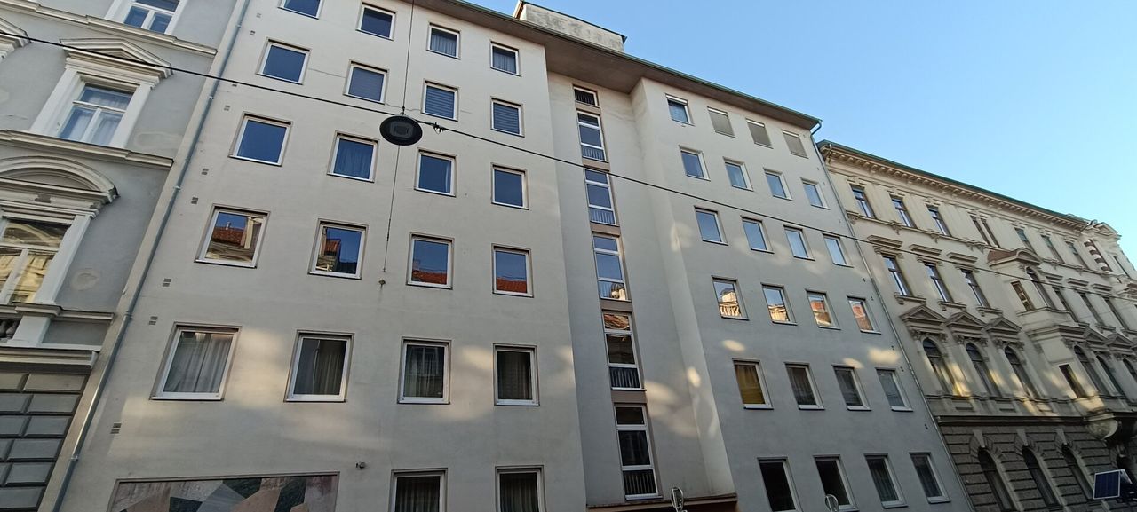 Zum Verkauf gelangt eine Garconniere in der Nähe der Alten Technik in Graz. Die Wohnung befindet sich im 5. Liftstock und ist Richtung Süden ausgerichtet. Sie verfügt über einen Vorraum, ein Badezimmer mit Dusche, ein separates WC sowie ein Wohn-Schlafzimmer mit Küchenzeile und einen Abstellbereich. Von diesem Wohn-Schlafbereich gelangt man auf den nach Süden, in den Innenhof ausgerichteten Balkon. Die Sanitärräume sind vom Vorraum zu begehen.