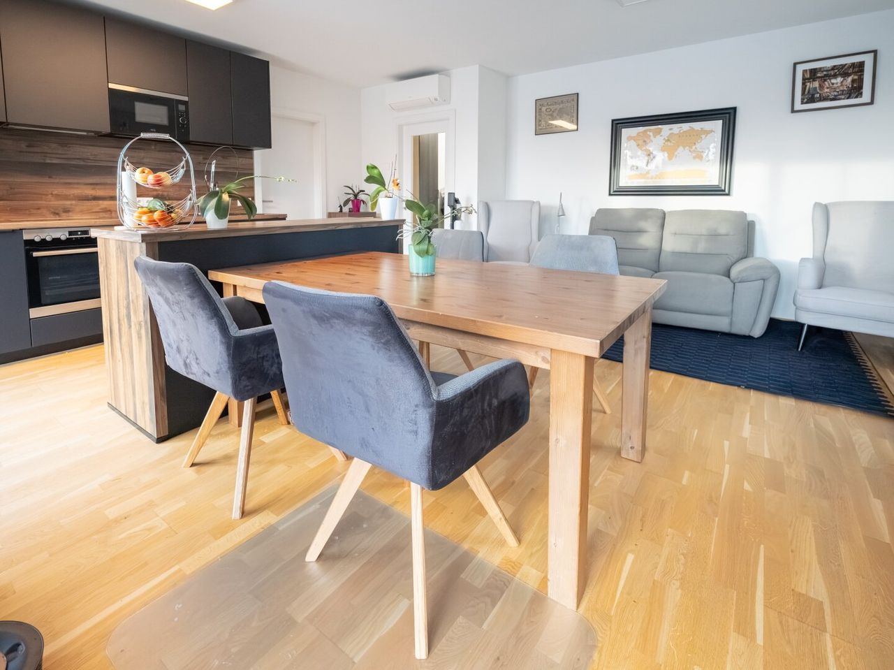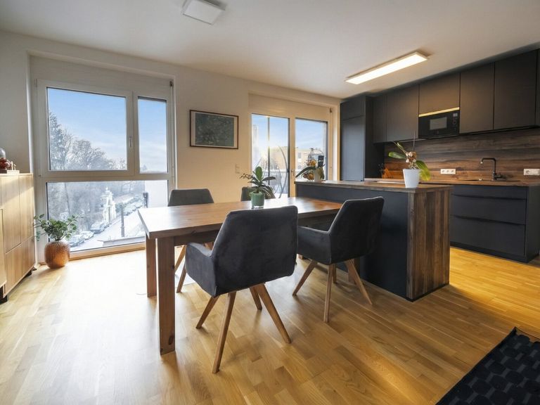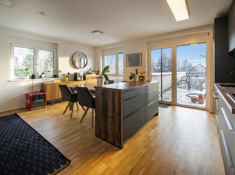 Diese hochwertig ausgestattete 3-Zimmer-Wohnung im 3. Obergeschoß überzeugt durch ihre ideale Raumaufteilung, den offenen Wohncharakter und vor allem durch ihre seltene Kombination aus Wohnfläche und außergewöhnlich großzügiger Terrasse.