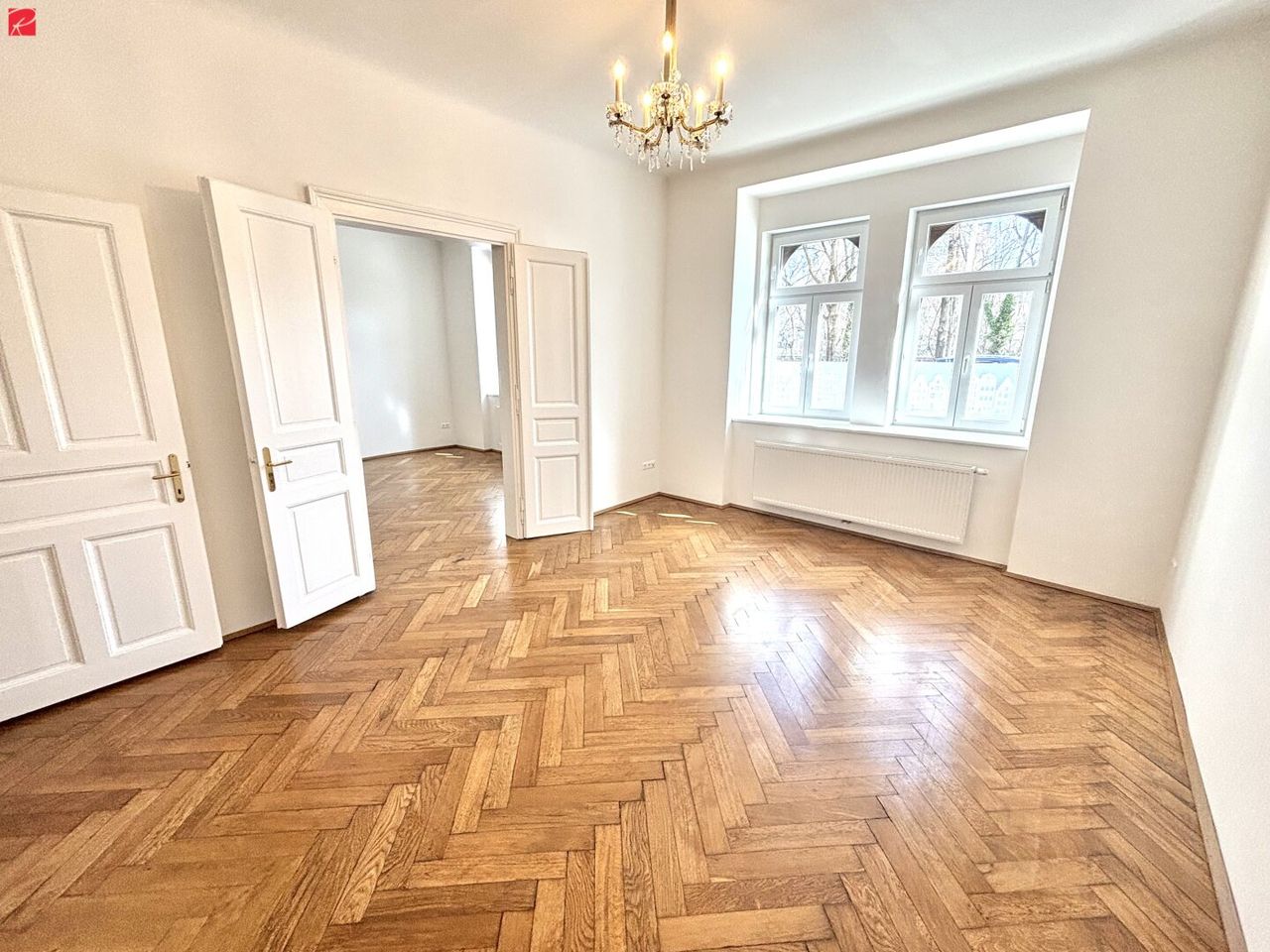 Diese traumhafte Wohnung ganz im Altbaustil mit modernen Elementen und einem ruhigen Balkon mit Abendsonne wartet auf Ihre Einrichtungsideen: Hohe Doppelflügel-Türen im Altbaustil, traumhafte Luster, gepflegte Fischgrät-Parkettböden, großzügige Fenster, hohe Wände und der Charme des gesamten Hauses werden Sie hier restlos beeindrucken.