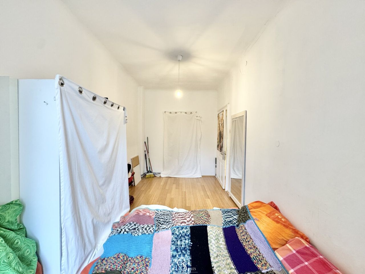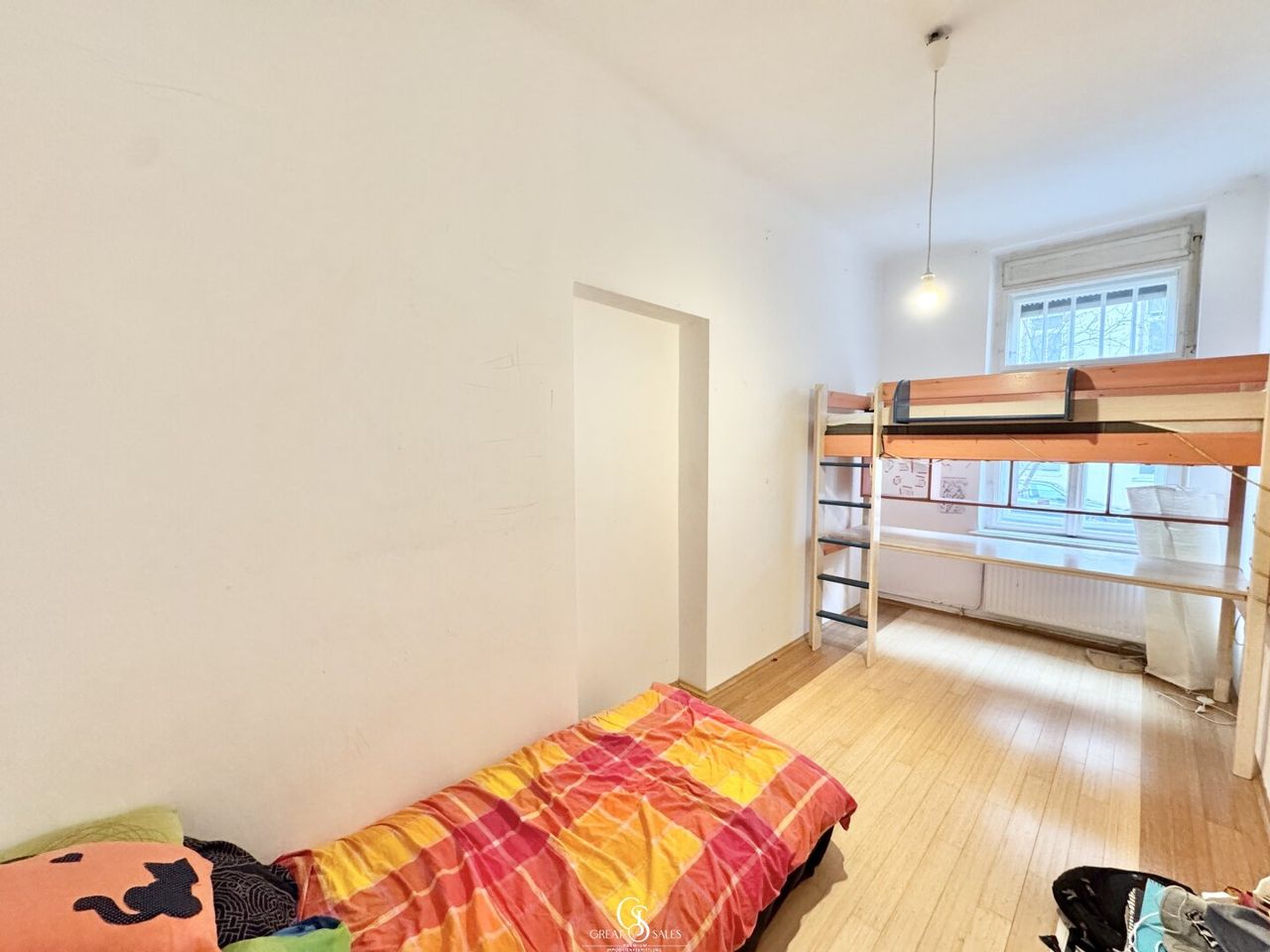Das helle Wohnzimmer mit großen Fenstern schafft eine freundliche Wohnatmosphäre. Zwei weitere Zimmer können flexibel gestaltet werden, wobei eines hofseitig ausgerichtet ist und sich perfekt als Schlafzimmer eignet.