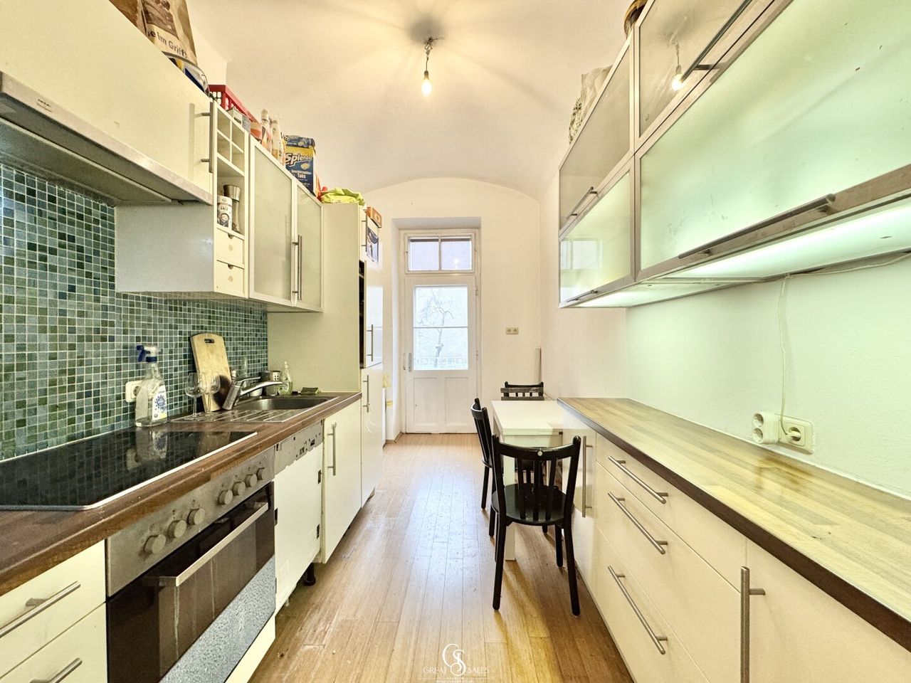 Die gut ausgestattete Küche lädt dazu ein, kulinarische Kreationen zu entfalten. Von hier gelangt man direkt auf den hofseitig gelegenen Balkon, ideal zum Entspannen und Genießen.