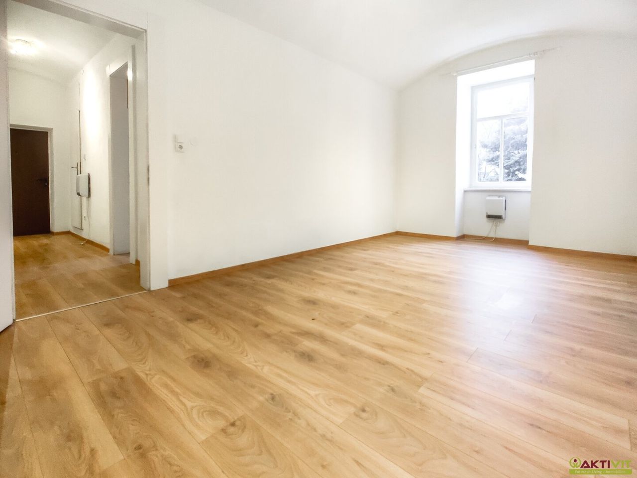 Die Wohnung befindet sich im Erdgeschoss eines um die Jahrhundertwende errichteten Gebäudes und bietet eine Wohnfläche von rund 39 m². Sie verfügt über ein großzügiges Wohn- und Schlafzimmer, eine separate Küche, ein Badezimmer mit Dusche und WC. Alle Räume sind über den zentralen Vorraum begehbar, wodurch ein praktischer Grundriss ohne Durchgangszimmer gegeben ist. Zur Wohnung gehört ein Kellerabteil mit ca. 4 m². Eine Gartennutzung ist ebenfalls möglich.