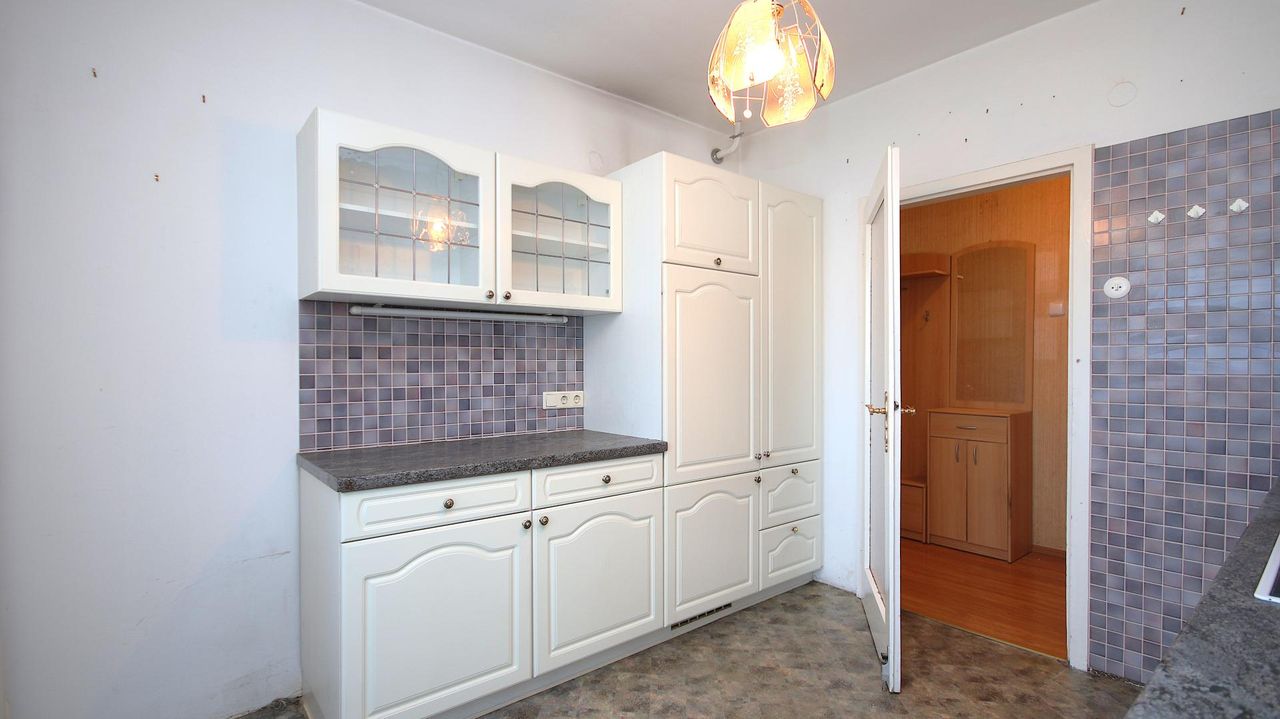 Die im 12. Stock gelegene Wohnung befindet sich in einer Wohnanlage aus dem Jahr 1957 und ist derzeit sanierungsbedürftig.