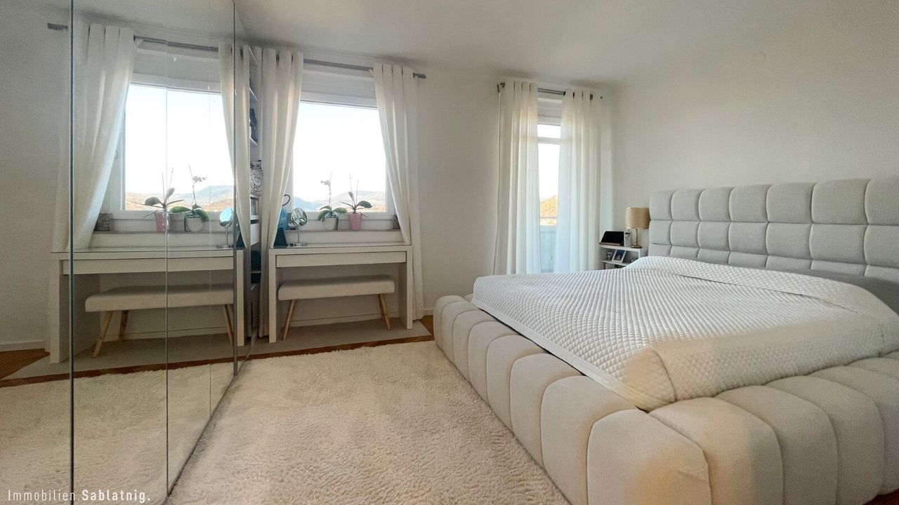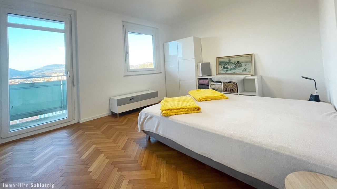 Zum Verkauf steht eine außergewöhnliche 120 m² Wohnung, die durch ihre spektakuläre Aussicht besticht. Von hier genießen Sie den Blick auf den Grazer Schlossberg, die Kirche St. Veit, den Grazer Schöckl sowie einen atemberaubenden Rundblick über die gesamte Stadt – ein Panorama, das jeden Moment in Ihrem Zuhause besonders macht.