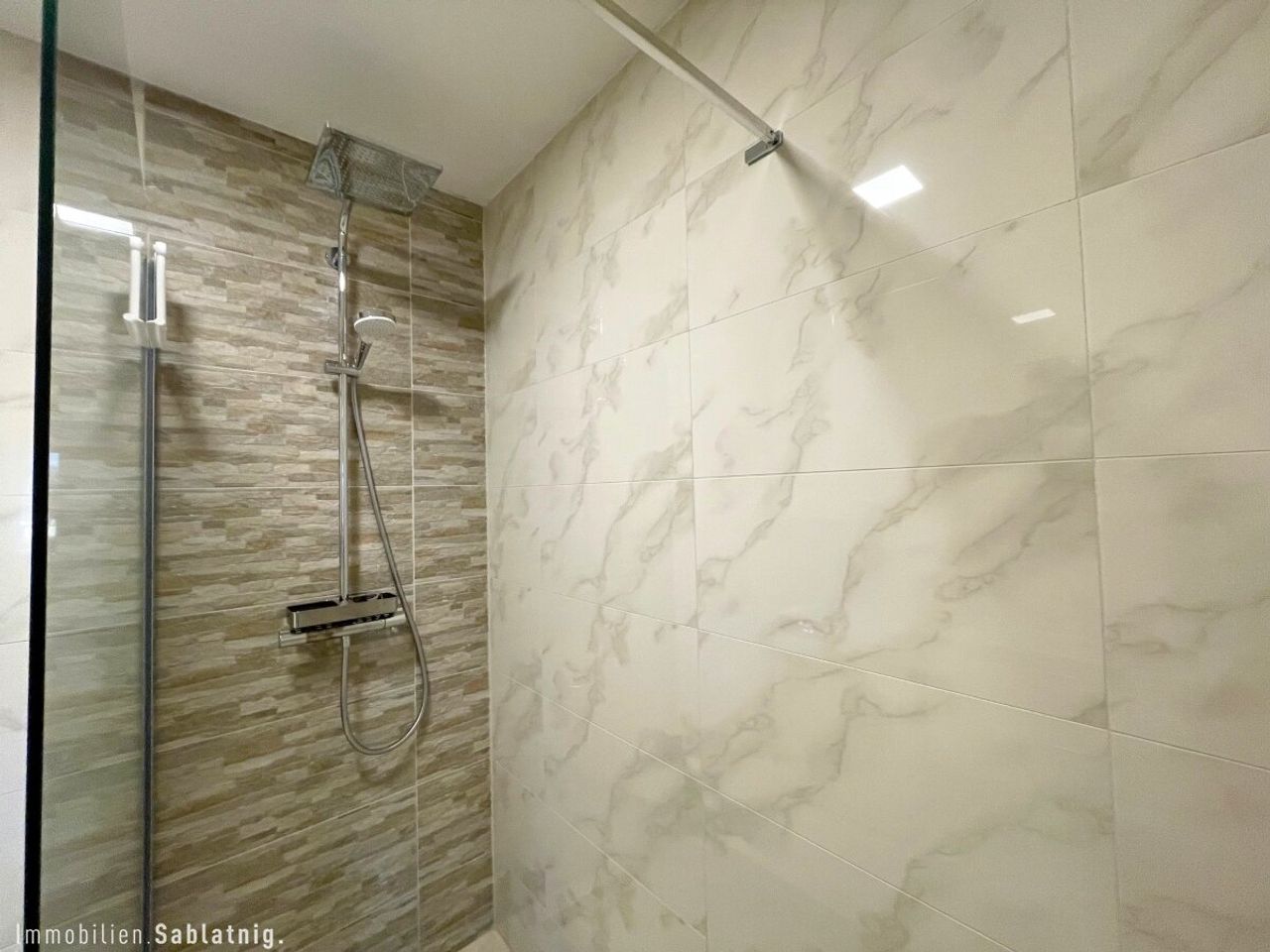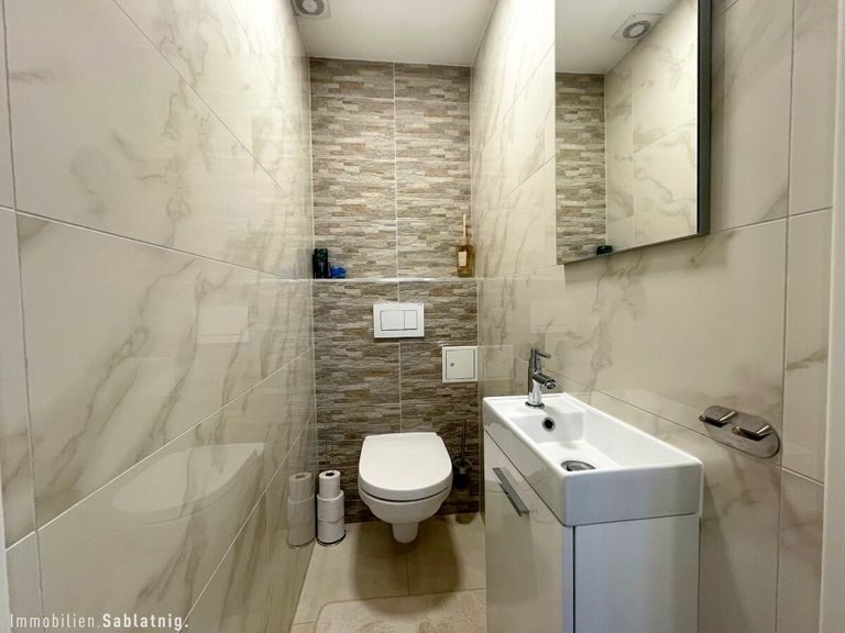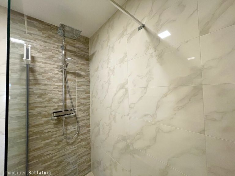 Das Badezimmer mit Dusche sowie die separate Toilette wurden komplett modernisiert. Die gesamte Wohnung wurde 2023/2024 umfassend saniert: neue Böden, moderne Fenster mit 3-fach Verglasung, erneuerte Wasserleitungen, Elektroinstallationen und Sanitäranlagen.