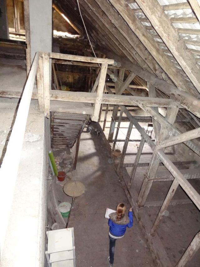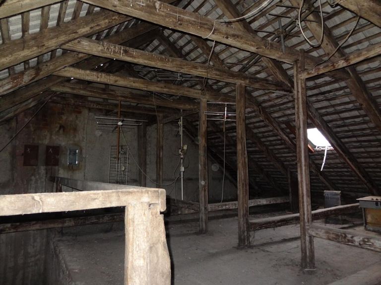 Dachbodenfläche (roh): Gesamtfläche rd. 500 m², davon: 214 m² im ersten Gebäude, 285 m² im Nachbargebäude.