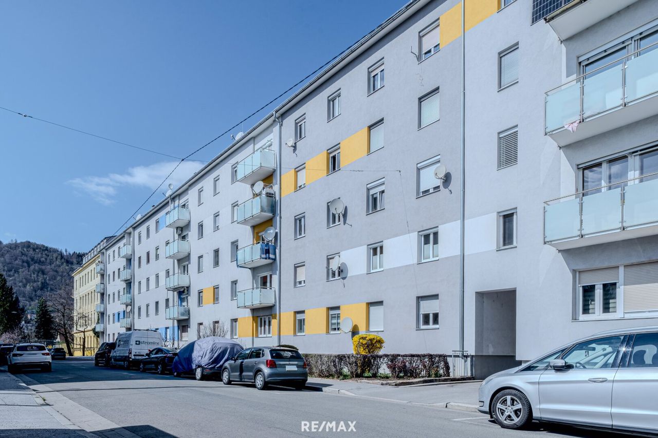 Diese top-sanierte Wohneinheit mit ca. 50 m² befindet sich im 2. Obergeschoss (ohne Lift) einer gepflegten, bereits thermisch sanierten Wohnanlage in Graz-Eggenberg, nahe der Fachhochschule Joanneum.