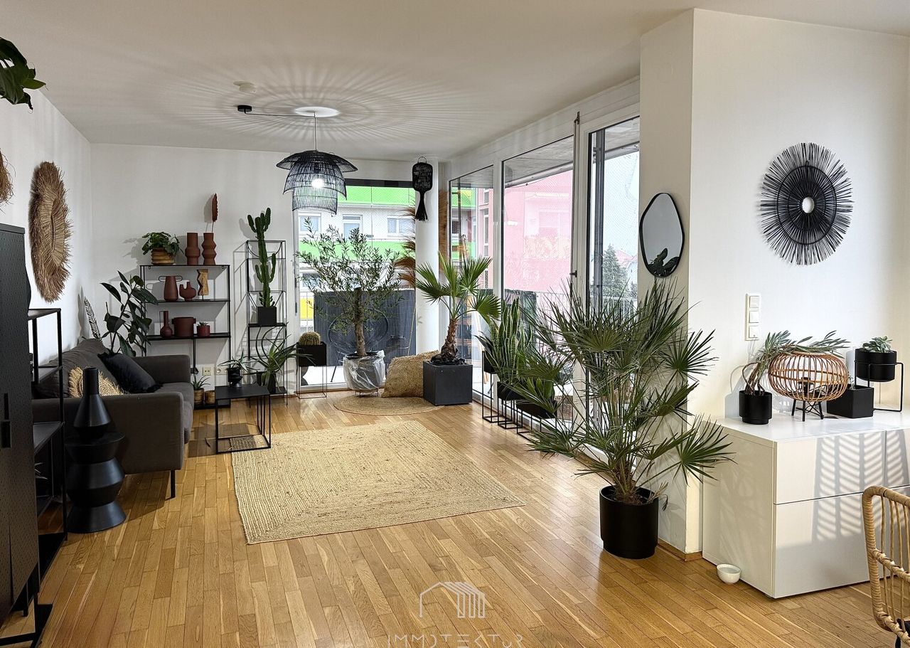 Absolutes Highlight: der 33 m² Balkon, der sich über die gesamte Wohnungsfront erstreckt – perfekt für Entspannung, Outdoor-Dining oder Urban Gardening, mit einem attraktiven Fernblick aus dem 4. Obergeschoß.