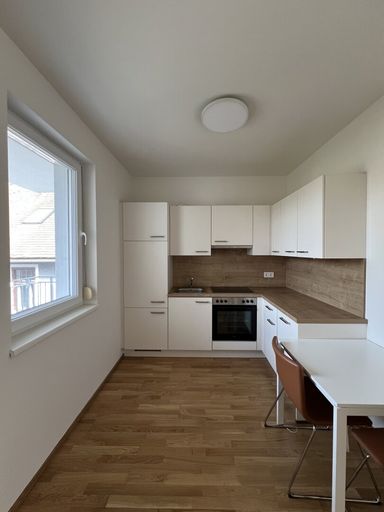 Die separate Küche verfügt über ein eigenes Fenster und bietet ausreichend Platz für einen kleinen Esstisch – ideal für gemütliche Mahlzeiten. Das Badezimmer ist funktional gestaltet und mit Dusche, WC, Waschtisch mit Spiegelschrank, Fenster sowie einem Waschmaschinenanschluss ausgestattet.