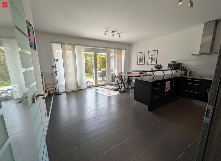 Der großzügige Wohnbereich wird schnell zum Mittelpunkt deines Alltags: gemeinsames Kochen an der Kücheninsel, lange Abende mit Freunden oder einfach entspannt auf der Couch den Tag ausklingen lassen. Die großen Fenster holen das Licht herein und verbinden Innen- und Außenraum auf angenehme Weise.