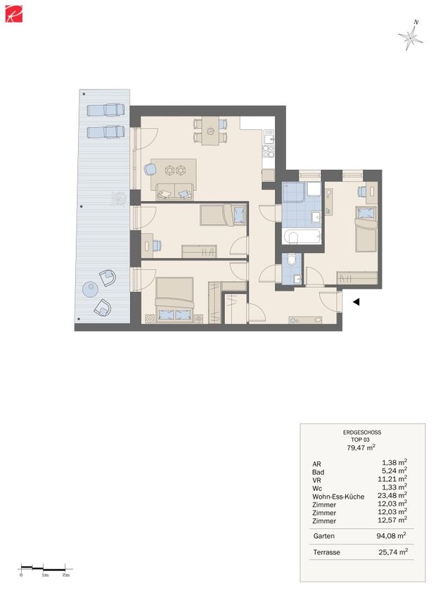 Im Angebot haben wir für Sie eine großzügige 4-Zimmer-Gartenwohnung im Erdgeschoss (Top 03) mit durchdachter Raumaufteilung und sonniger Außenfläche.