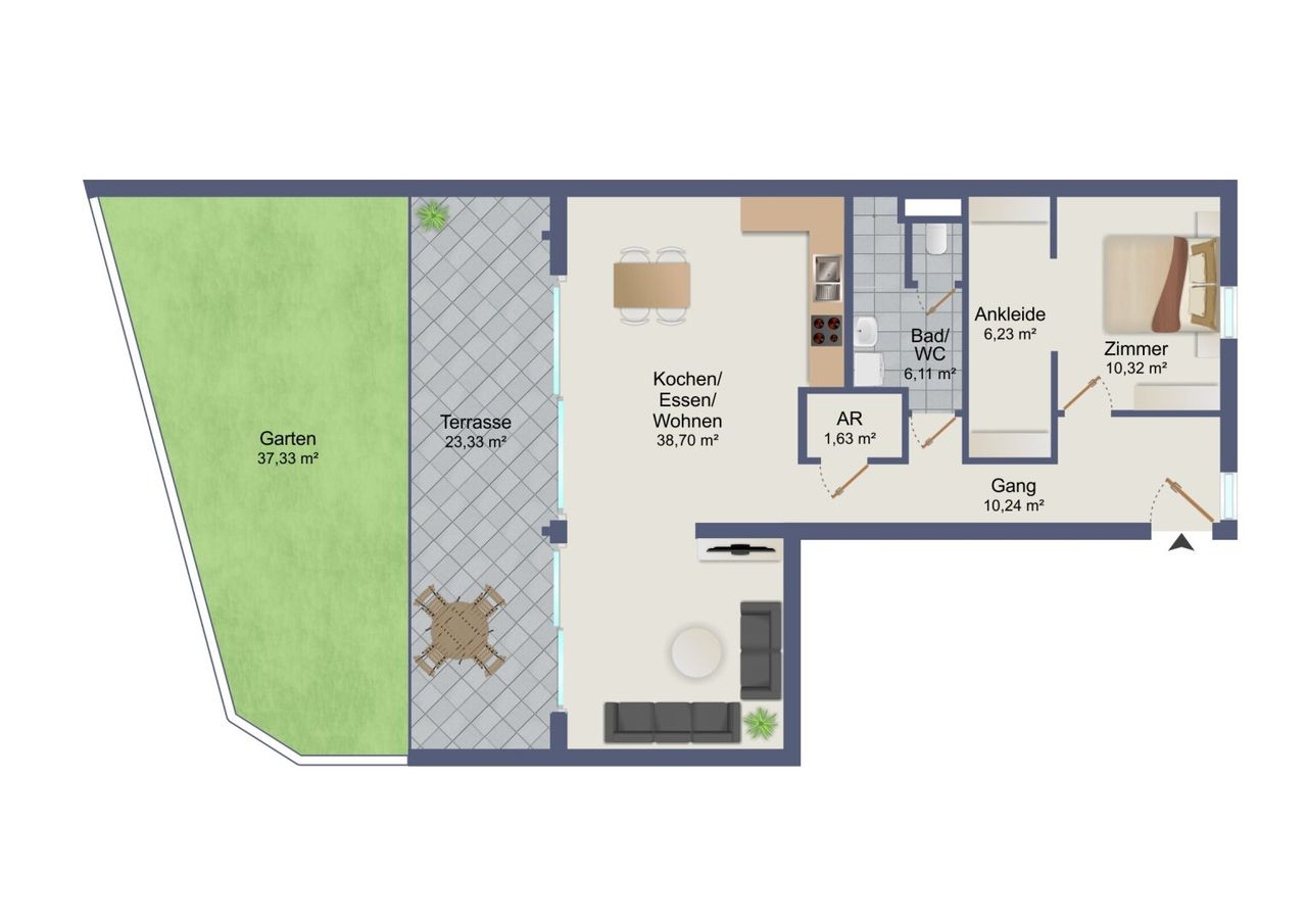 Ob entspanntes Frühstück im Freien, laue Sommerabende mit Freunden oder einfach ein ruhiger Moment im Grünen – dieser Garten wird schnell zu Ihrem persönlichen Lieblingsplatz.