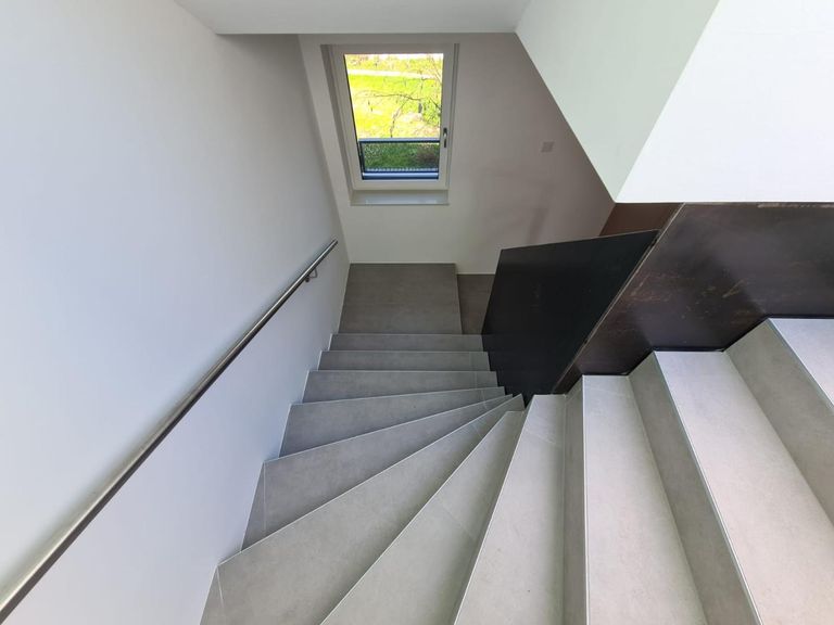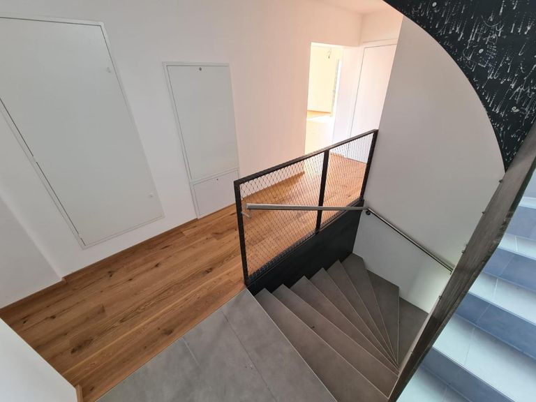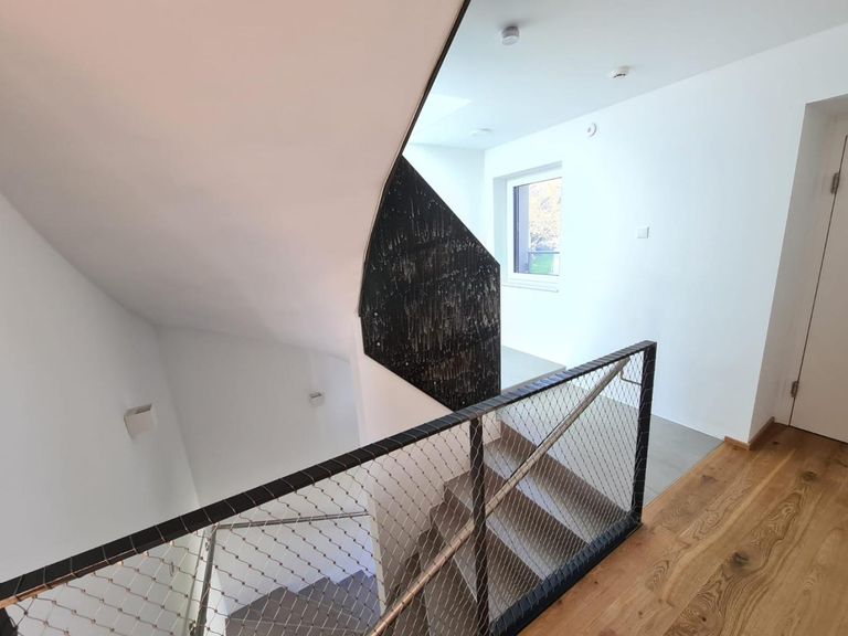 Die Ausstattung des Penthouses erfüllt höchste Ansprüche an Design, Komfort und Technik. Holz-Aluminium-Fenster mit 3-fach-Isolierverglasung sorgen gemeinsam mit elektrischen Raffstores in den Wohnbereichen für optimale Lichtverhältnisse und angenehmes Raumklima. Die moderne Haustechnik umfasst ein intelligentes Smart-Home-System von LOXONE, das zentrale Funktionen wie Licht, Beschattung und Temperatursteuerung komfortabel automatisiert. Eine Deckenkühlung in der gesamten Wohnung ergänzt die Fußbodenheizung und -kühlung mit Raumthermostaten, die von einer hocheffizienten Wärmepumpe gespeist werden und für ideale klimatische Bedingungen sorgen – zu jeder Jahreszeit.