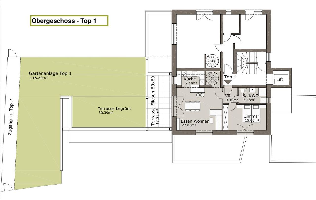 Stilvolles Wohnen mit Gartenidylle auf zwei Ebenen in Graz Waltendorf Die exklusive Wohneinheit erstreckt sich über zwei großzügig geschnittene Ebenen, die durch eine elegante Wendeltreppe miteinander verbunden sind. Zusätzlich stehen zwei separate Wohnungseingänge – je einer auf jeder Ebene – zur Verfügung, die einen flexiblen Zugang ermöglichen. Ein Lift sorgt darüber hinaus für einen barrierefreien Zugang und höchsten Wohnkomfort. Im Erdgeschoss empfängt Sie ein einladender Vorraum, von dem aus Sie direkt in den optional gestaltbaren Bereich gelangen können. Das stilvolle Badezimmer mit Dusche und WC auf dieser Ebene ist mit hochwertigen Wand- und Bodenfliesen ausgestattet. Der direkte Zugang zur Terrasse...