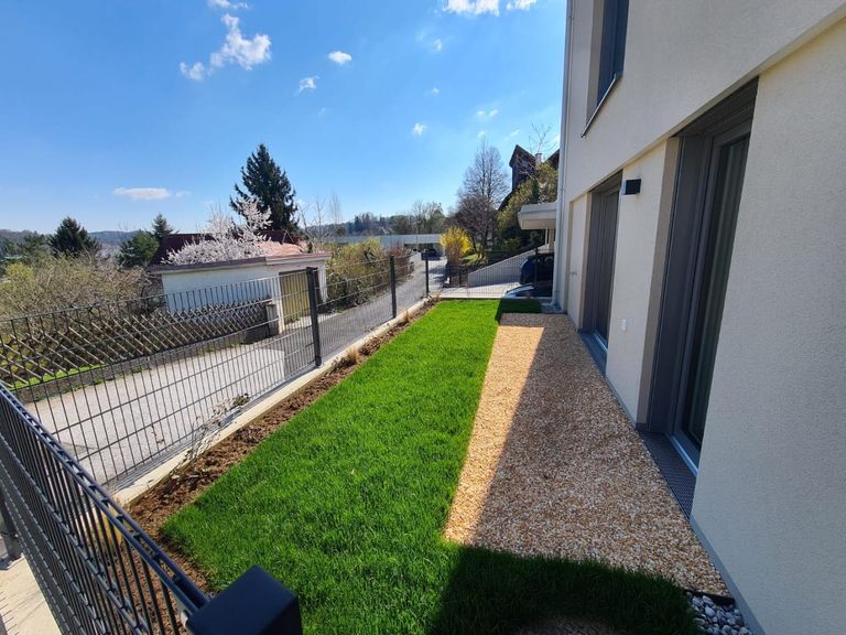 Besonders hervorzuheben sind die großzügigen Freiflächen auf dieser Ebene: Neben einer ca. 19 m² großen Terrasse mit eleganten Feinsteinzeug-Fliesen steht Ihnen eine weitere begrünte Terrasse mit ca. 31 m² zur Verfügung. Ein absolutes Highlight ist der private Garten mit einer Fläche von ca. 119 m², der ein hohes Maß an Lebensqualität und Freiraum bietet. Direkt neben den beiden zur Wohnung gehörenden Carport-Stellplätze befindet sich ein praktischer Abstellraum, der zusätzlichen Stauraum schafft.