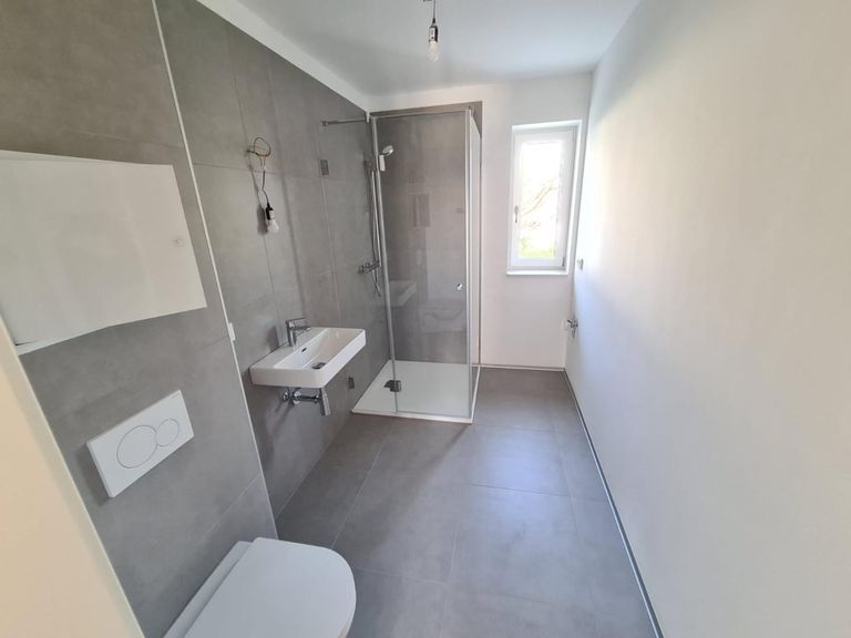 Im Erdgeschoss empfängt Sie ein einladender Vorraum, von dem aus Sie direkt in den optional gestaltbaren Bereich gelangen können. Das stilvolle Badezimmer mit Dusche und WC auf dieser Ebene ist mit hochwertigen Wand- und Bodenfliesen ausgestattet. Der direkte Zugang zur Terrasse mit einer Fläche von ca. 25 m² bietet Raum für Entspannung im Freien.
