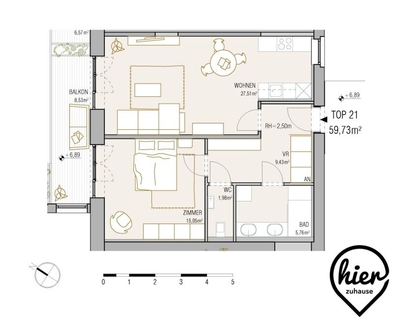 Dem großzügigen Vorraum (Ankleide) sind das Bad, das WC (separat), das Schlafzimmer und der Wohn-Koch-Essbereich angeschlossen. Vom Schlaf- und Wohnzimmer erreicht man den ca. 8,5 qm großen, nach Westen ausgerichteten Balkon mit tollem Blick ins Grüne.