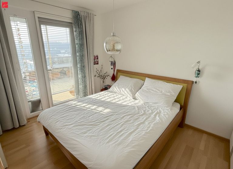 Die beiden freundlichen Schlafzimmer bieten Ihnen Zugang zur Terrasse und sind zusätzlich mit bodenbündigen Fenstern inkl. Beschattung ausgestattet. Ein (Doppel-)Bett, sowie ein geräümiger Kasten finden hier gut ihren Platz. In der Küche erwarten Sie reichlich Arbeitsflächen und Stauraum, sowie hochwertige...