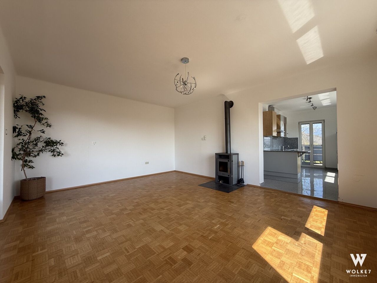 - großer Wohnraum mit offener Küche inkl. Geräten und Zugang zum Balkon
