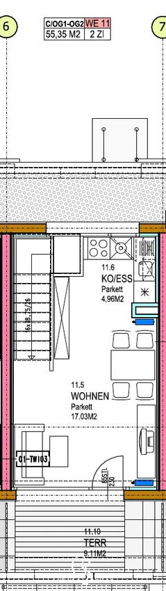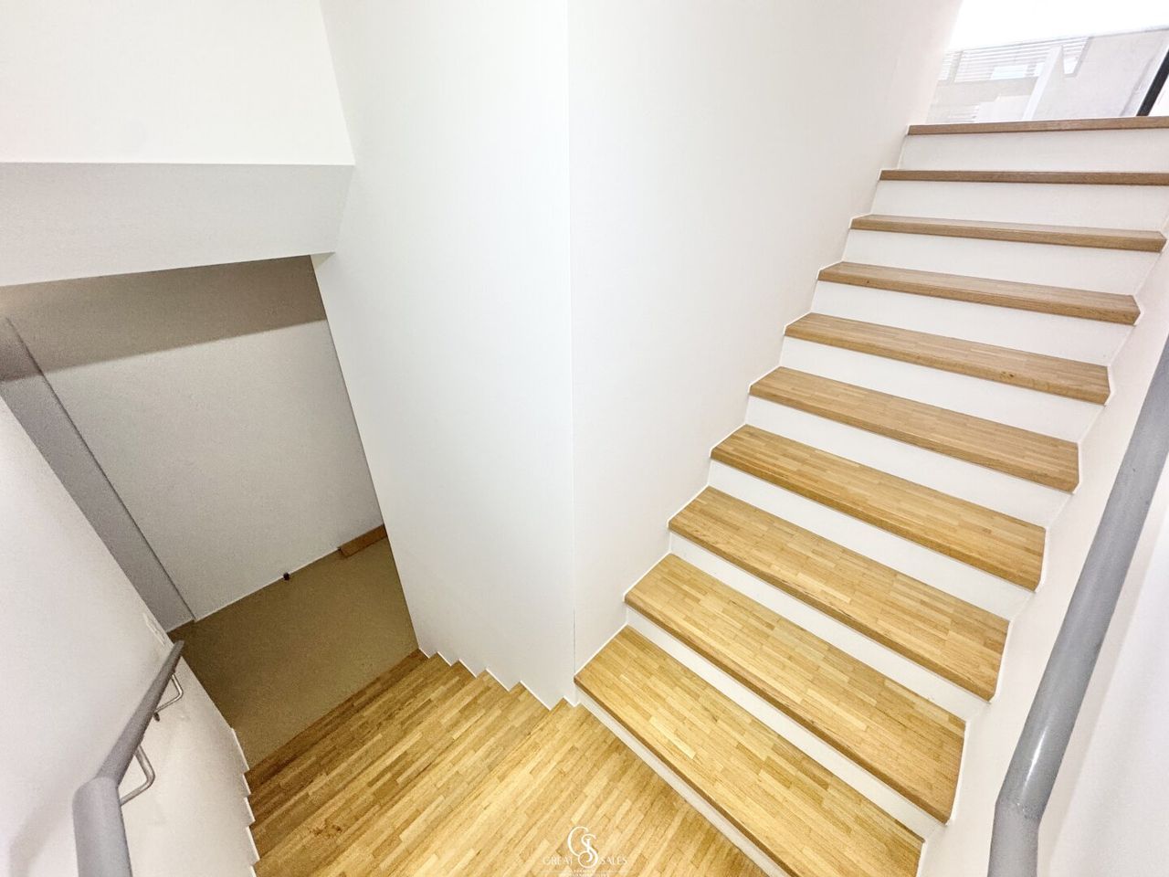 Die Wohnung erstreckt sich über zwei Etagen und überzeugt durch einen gut durchdachten Grundriss sowie helle, offene Räume. Großzügige Fensterflächen sorgen für viel Tageslicht, während die ruhige Terrasse mit Blick in den Innenhof zusätzlichen Wohnkomfort bietet.