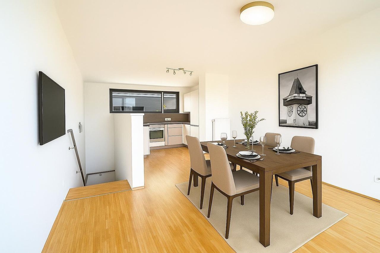 Die Wohnung erstreckt sich über zwei Ebenen und beeindruckt mit lichtdurchfluteten Räumen, großen Fensterflächen und einem ruhigen Balkon zum Innenhof. Perfekt, um den Morgen mit einer Tasse Kaffee zu beginnen oder den Abend entspannt ausklingen zu lassen.
