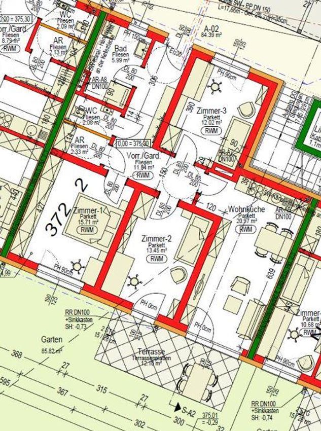 mit 84 m² Wohnfläche, 12 m² Terrasse, 85 m² Gartenfläche,
