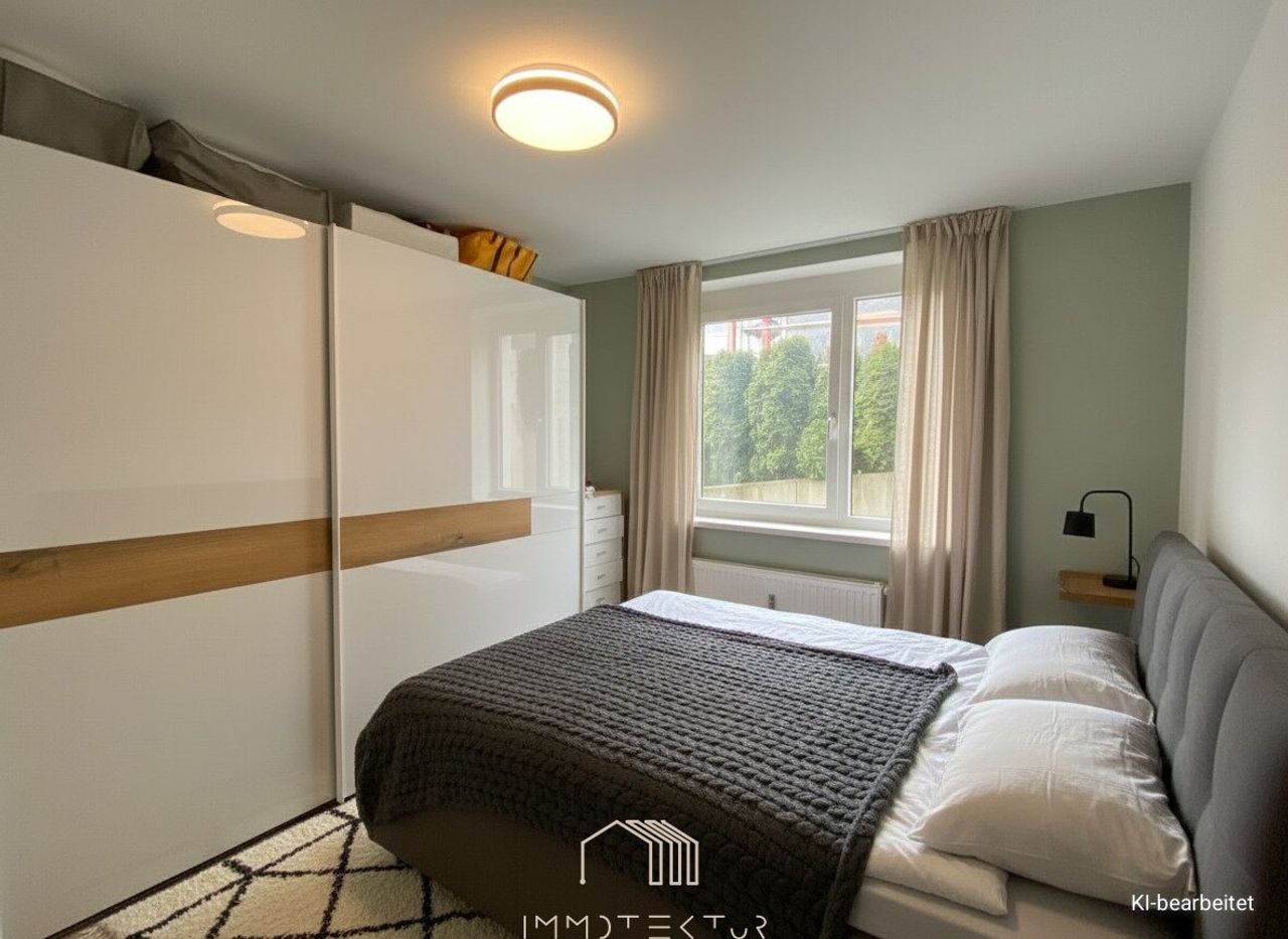 Das ruhig gelegene Schlafzimmer bietet ideale Voraussetzungen für erholsame Nächte.