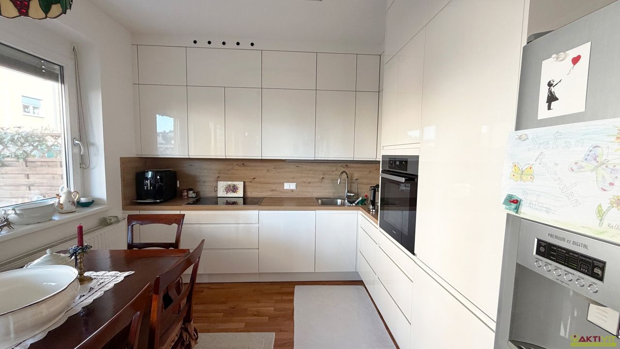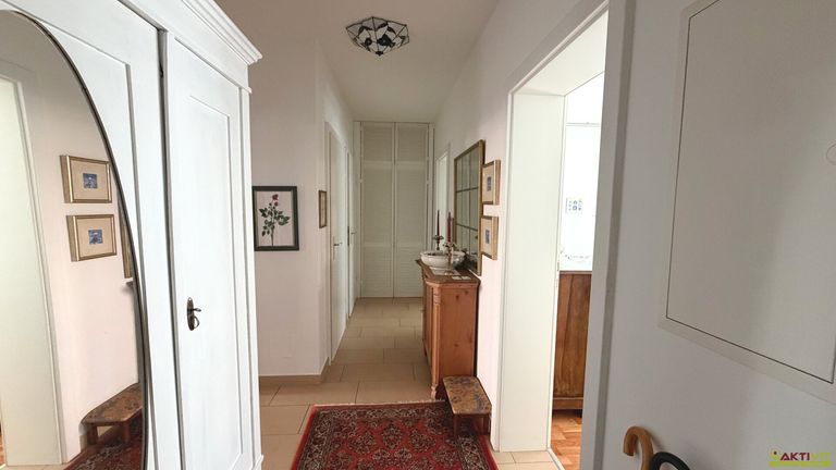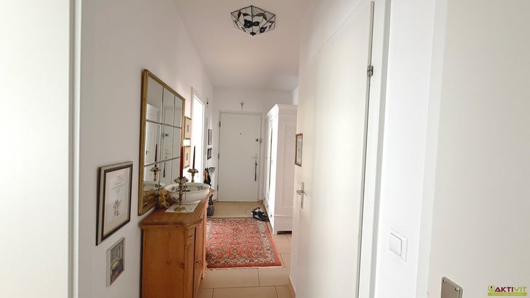 Die Wohnung befindet sich in einem Neubau in Massivbauweise und präsentiert sich in sehr gepflegtem Zustand. Ausgestattet ist sie mit Fliesen- und Parkettböden, einer modernen Einbauküche sowie Badmöblierung. Besonders hervorzuheben ist die helle Küche mit klarer Linienführung, viel Stauraum und gut integriertem Essbereich. Auch das Badezimmer vermittelt einen sehr gepflegten und zeitlosen Eindruck; es verfügt über ein Fenster, eine Badewanne, eine Dusche und einen großzügigen Waschtisch. Rollläden sowie Kabel- bzw. Satelliten-TV ergänzen die Ausstattung sinnvoll.
