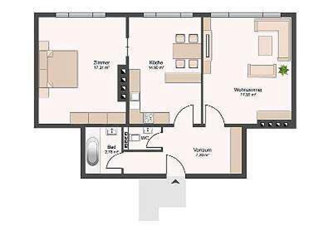- Vorzimmer - Wohnküche mit moderner Einbauküche/ E-Geräte sehr gut ausgestattet - 2 Zimmer - Badezimmer mit Badewanne - WC getrennt - Kellerabteil