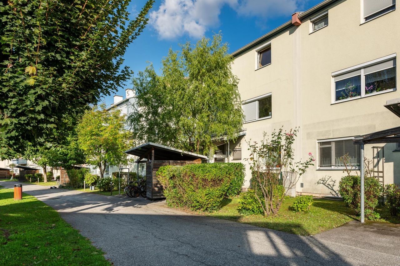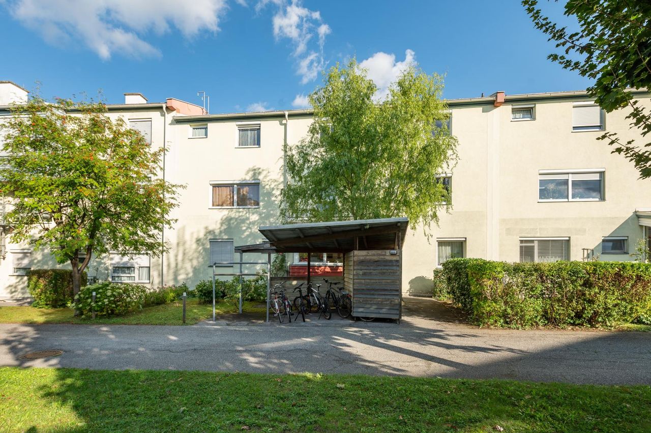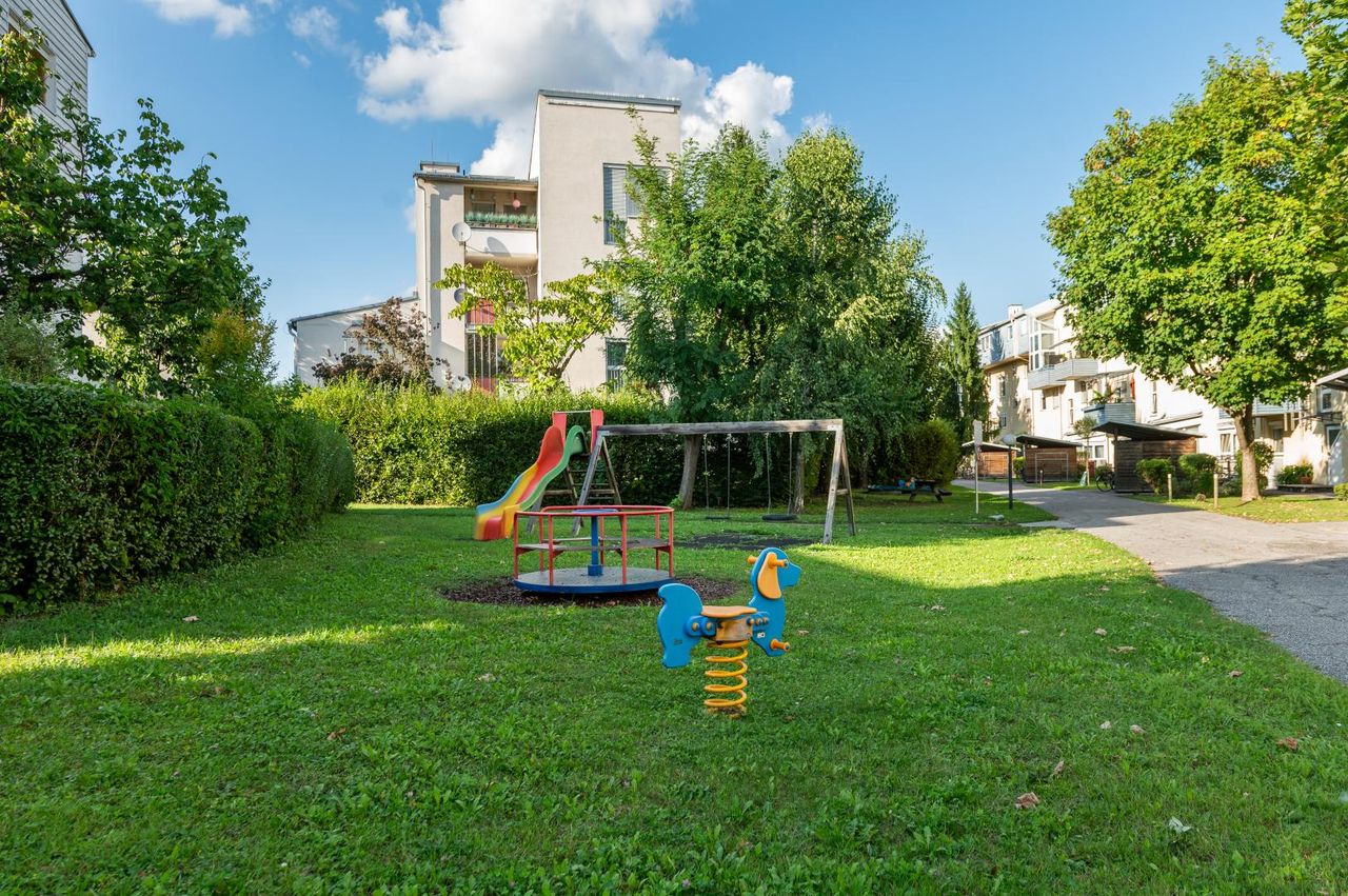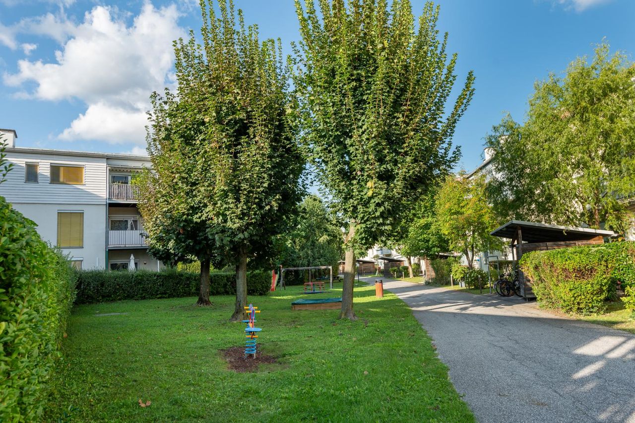 Die Wohnanlage präsentiert sich in einem gepflegten Zustand, umgeben von großzügigen Grünflächen. Ruhige Wohnqualität und zahlreiche Spielmöglichkeiten machen sie besonders familienfreundlich.