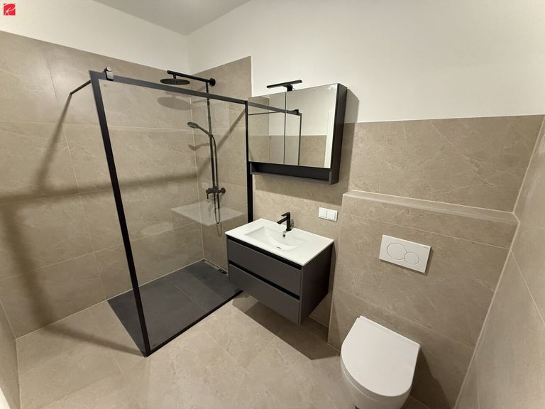 Die Wohnung selbst präsentiert sich als moderner Neubau mit hochwertiger Ausstattung und durchdachtem Grundriss auf ca. 60 m² Wohnfläche. Bereits beim Eintreten empfängt Sie ein heller, freundlicher Eingangsbereich, der ein angenehmes Wohngefühl vermittelt. Eine praktische Abstell- bzw. Ankleidenische sorgt für zusätzlichen Stauraum und Ordnung im Alltag.
