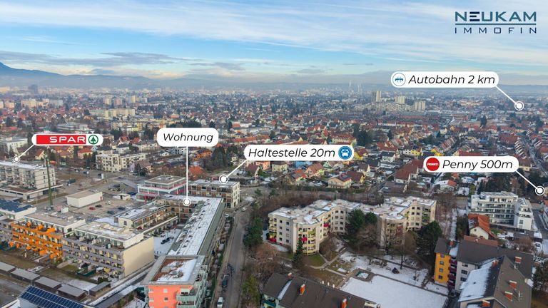 Die hervorragende Verkehrsanbindung macht diese Immobilie besonders attraktiv. Dank der Buslinien, dem Autobahnanschluss und dem nahegelegenen Bahnhof sind Sie bestens vernetzt und gelangen schnell und unkompliziert in alle Teile von Graz und darüber hinaus.