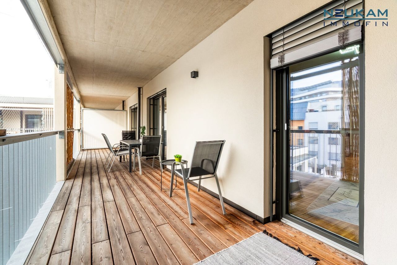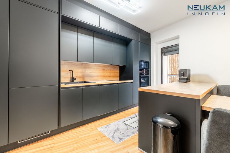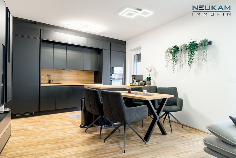 Die offene Einbauküche ist ein Highlight für jeden Hobbykoch und bietet Ihnen ausreichend Platz, um Ihre kulinarischen Fähigkeiten auszuleben. Genießen Sie Ihre Mahlzeiten auf der großzügigen Terrasse, die Ihnen einen herrlichen Grünblick bietet – der perfekte Ort, um nach einem langen Tag zu entspannen oder Gäste zu empfangen.