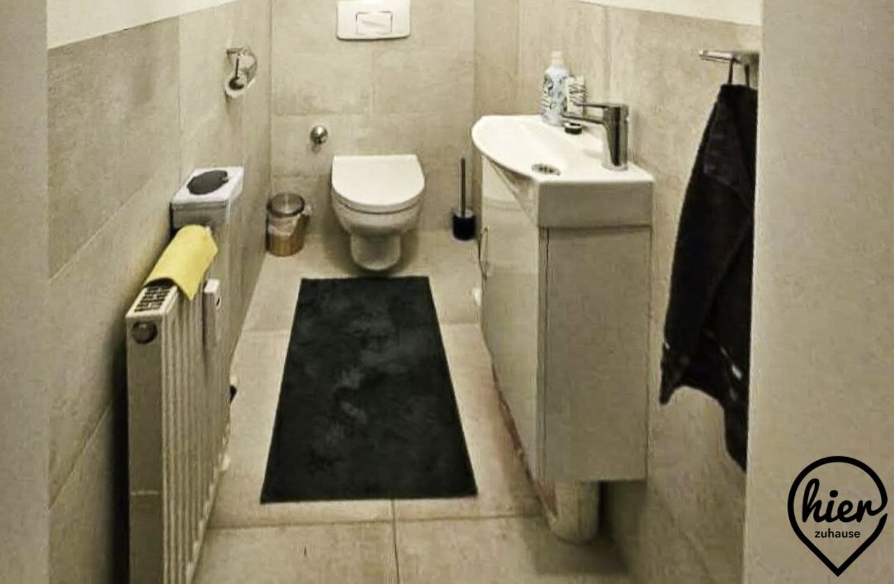 separates WC mit Handwaschbecken und Fenster