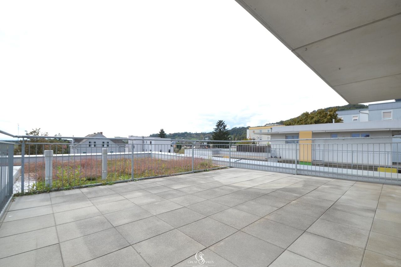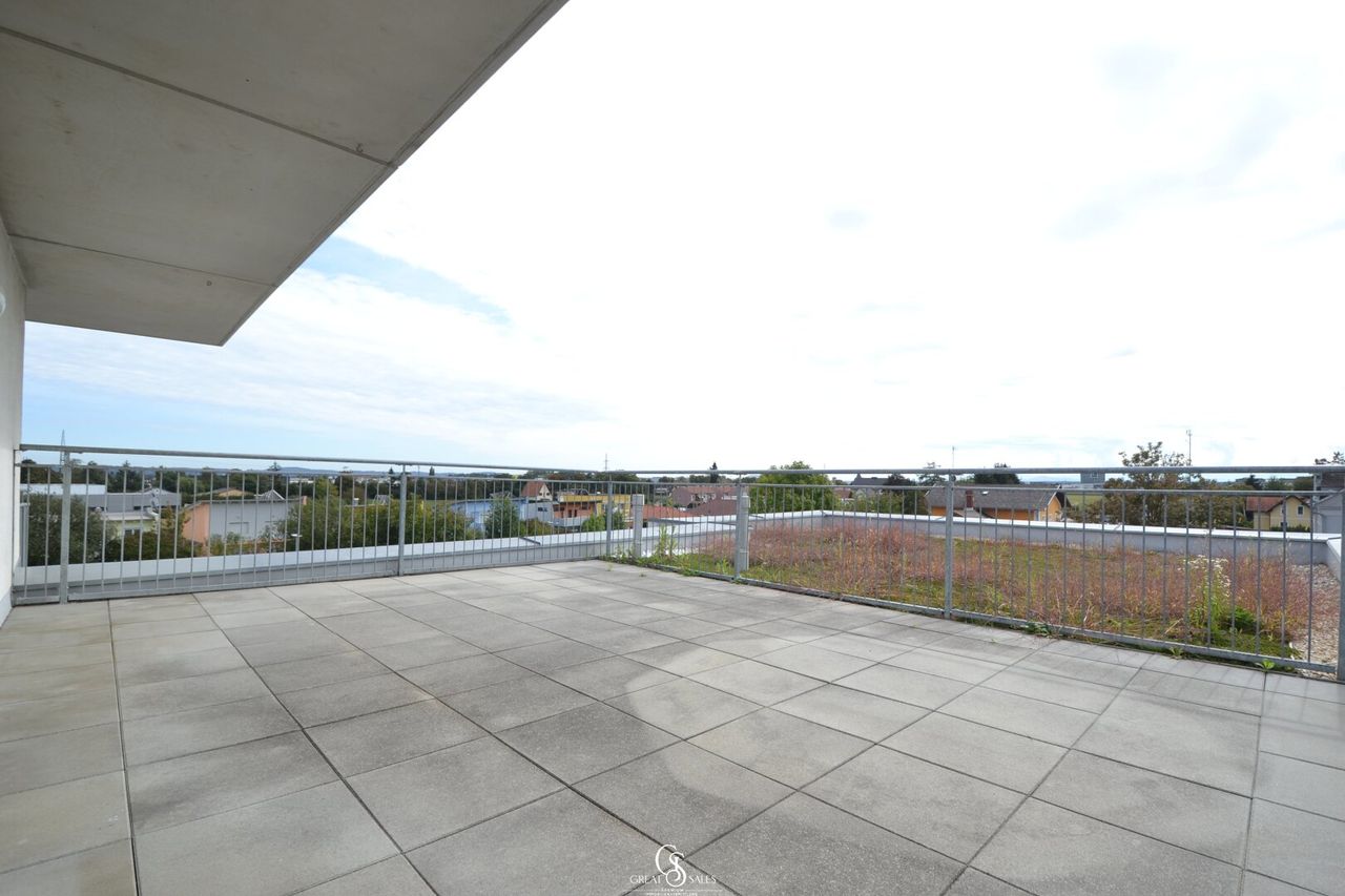 Diese moderne und gepflegte Drei-Zimmer-Wohnung befindet sich im Herzen von Straßgang, in einem ruhigen Siedlungsgebiet. Sie überzeugt durch ihre hochwertige Ausstattung, den durchdachten Grundriss sowie die großen, lichtdurchfluteten Fenster. Ein absolutes Highlight ist die über 31 m² große, nach Süden ausgerichtete Dachterrasse mit Rundumblick. Hier können Sie sowohl Ihren Gartentraum mit Hochbeeten erfüllen und den großzügigen Platz zum Verweilen, Grillen, Entspannen oder Sonnen genießen. Außerdem gelangen Sie vom Schlafzimmer und Kinderzimmer auf dem ca. 16m² großen, südwestlich ausgerichteten Balkon.