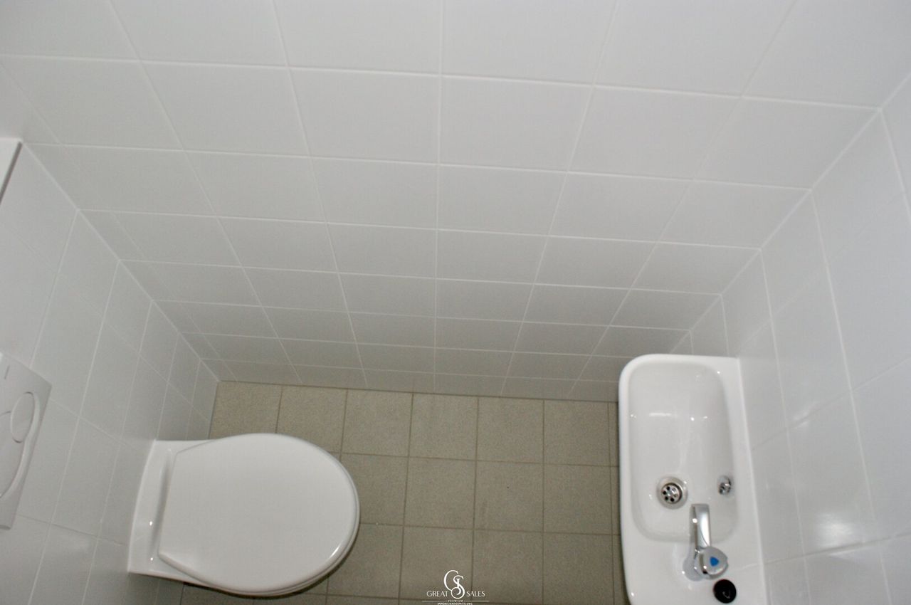 separates WC mit Waschbecken und Fenster