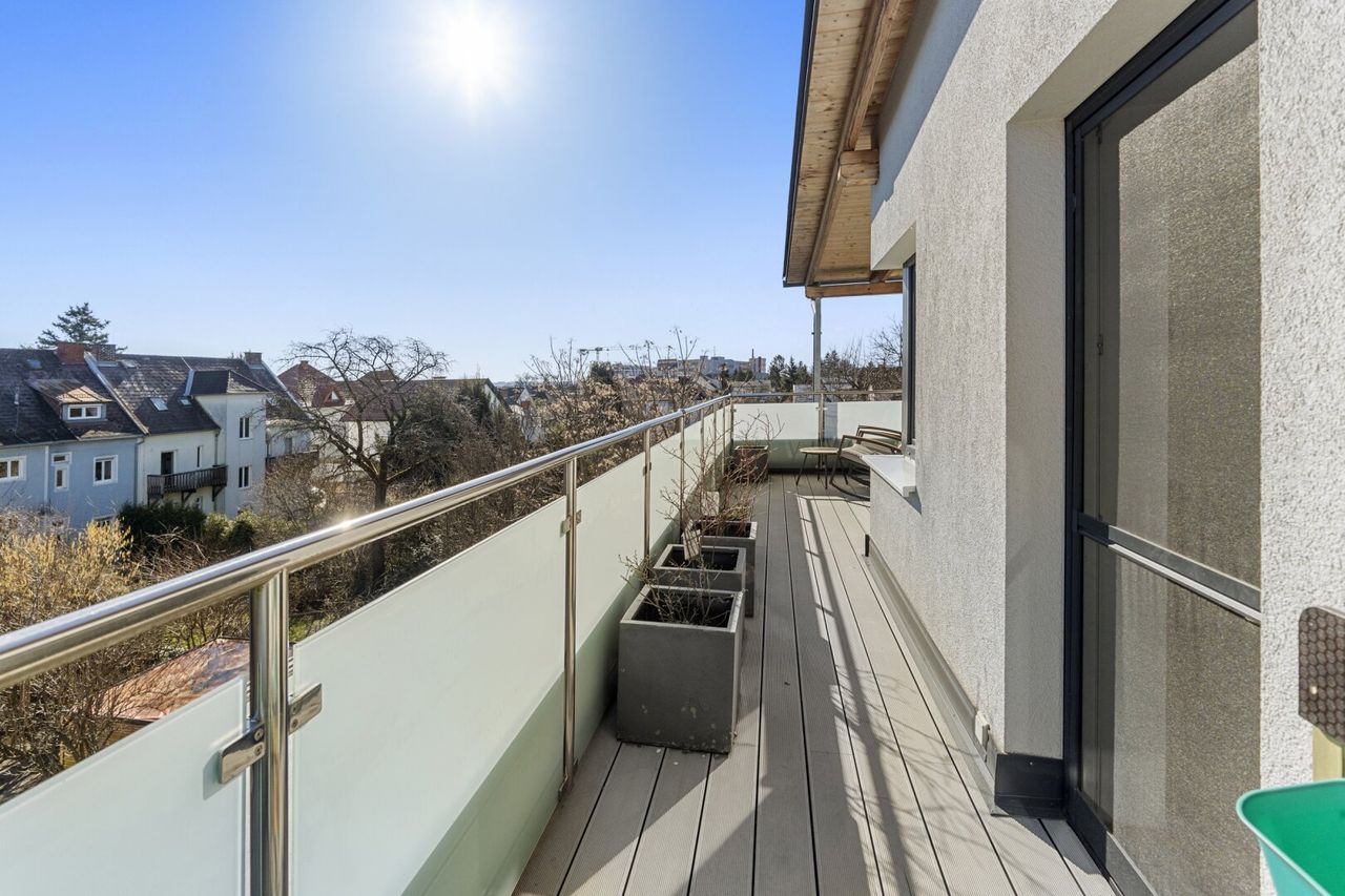 Ein echtes Highlight sind die zwei großzügigen Terrassen mit insgesamt ca. 68 m². Ob entspanntes Frühstück in der Morgensonne oder gemütliche Abende mit Blick über die Stadt und das Umland – diese Freiflächen schaffen Lebensqualität auf höchstem Niveau.