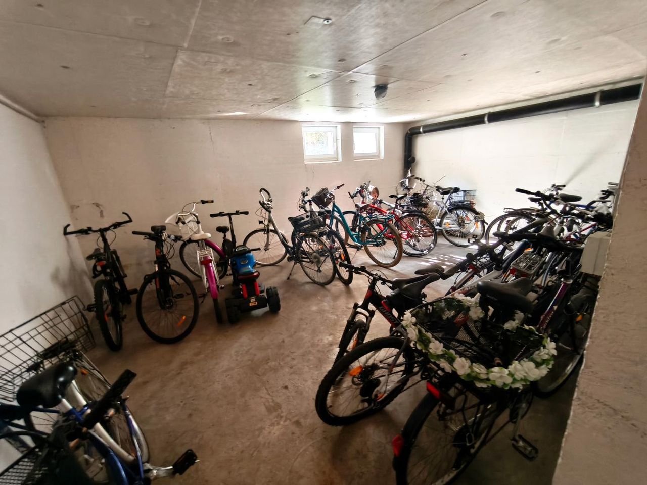 Ein Kellerabteil mit etwa 4,5 m² Nutzfläche ist der Wohnung zugeordnet, ein Fahrradraum ist ebenfalls vorhanden und schafft somit zusätzlichen Stauraum.