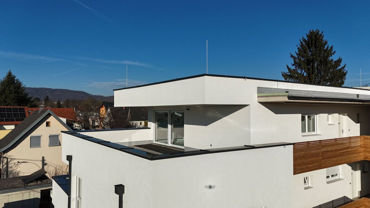 Zum Verkauf gelangt eine traumhafte Penthouse Wohnung in einem kleinem 7 Parteienhaus mit sonniger Terrasse und einer liebevoll gestalteten allgemein Gartenfläche mit Kinderspielplatz.