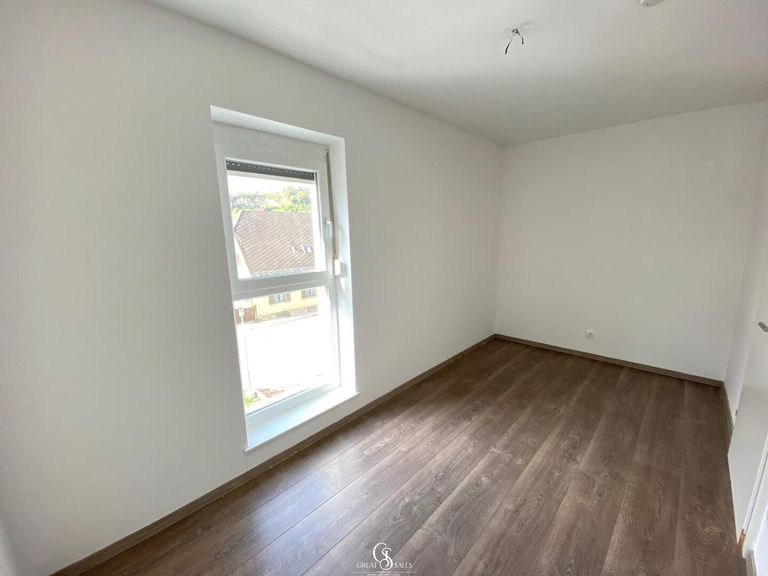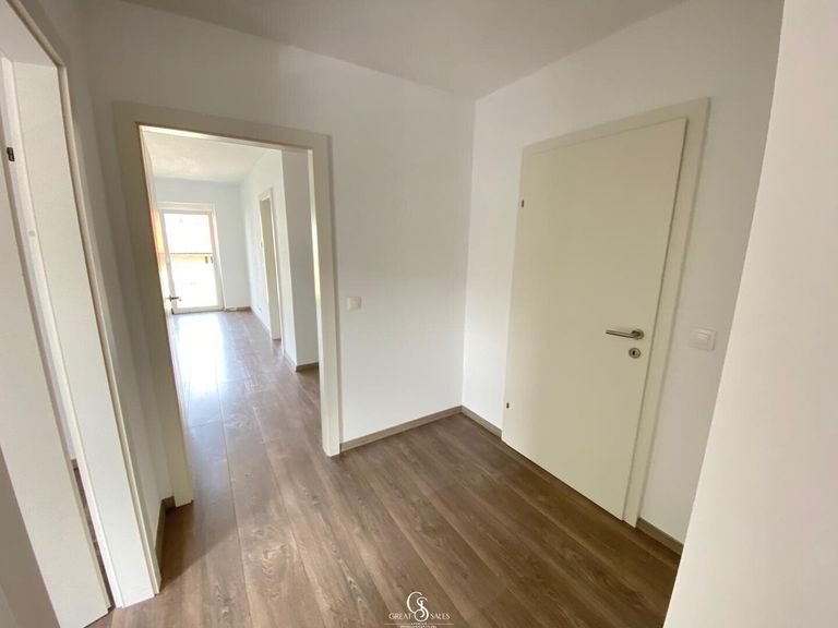 Alle Fenster sind mit Rolläden ausgestattet. In den Wohnräumen ist sie mit Laminat-Dielen, im Bad und WC mit Fließen versehen.