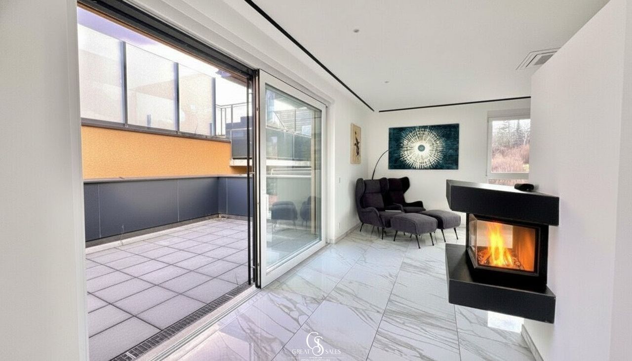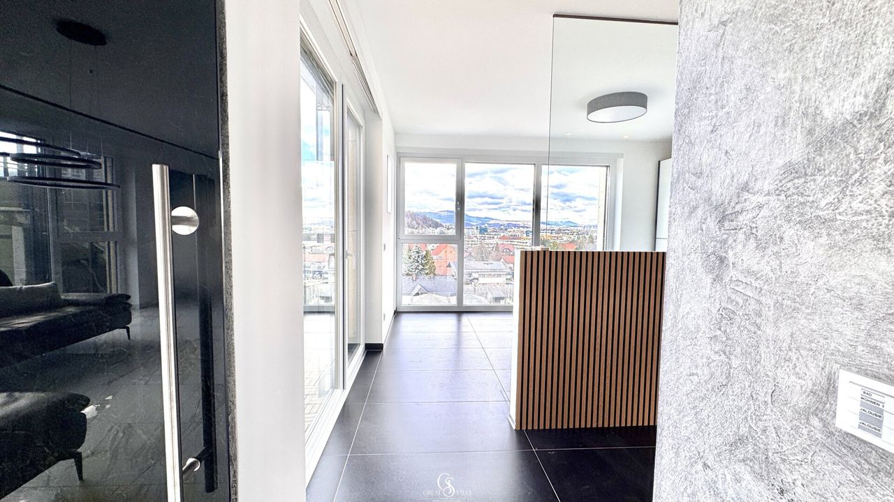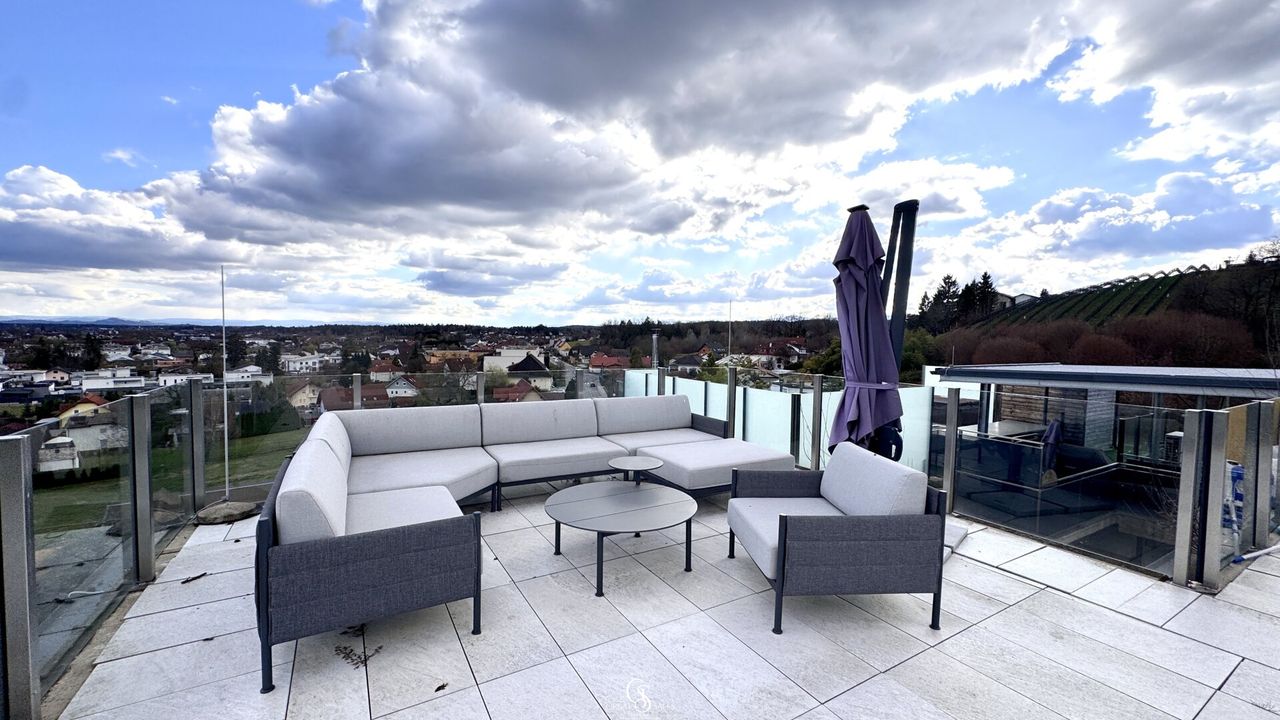 Dieses Loftartige-Penthouse besticht besonders durch ihre luxuriöse und sehr hochwertige Ausstattung! Es bietet Ihnen auf einer Wohnfläche von rd. 142m² einen Eingangsbereich, einem großen Wohn/Essbereich, eine Top Küchenzeile, einem Essbereich, einem Arbeitsbereich, einem Schlafbereich, zwei Bäder, getrenntes WC und gleich drei barrierefreie Terrassen. Das Highlight ist das Pool auf der traumhaften Dachterrasse über der Wohnung, welches am Boden aus Glas besteht und man von der Küche aus hinauf hindurch schauen kann und das Gefühl vermittelt, selber in einem Aquarium zu sein. Auf der teilüberdachten Dachterrasse im 7.OG erleben Sie außerdem einen unvergleichlichen 360 Grad Rundum-Fernblick in Richtung Graz, dem Schöckel oder auch in den Süden bis nach Slowenien. Ob Wellness, Sauna, Poolparty, Grillen oder einfach nur die Sonne genießen, sie lässt keine Wünsche offen.
