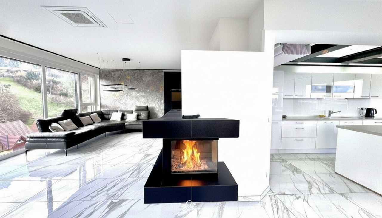 Ein wunderbarer, fix eingebauter offener Kamin sorgt für romantische und behagliche Stunden.