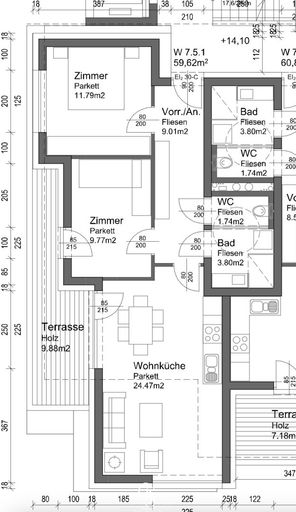 Die gesamte Wohnung inklusive den Sanitärbereichen ist mit Feinsteinzeug-Bodenfliesen versehen. Diese werden mit einer elektronisch regelbaren Fußbodenheizung beheizt und sorgen so für ein sehr angenehmes Wohnambiente.