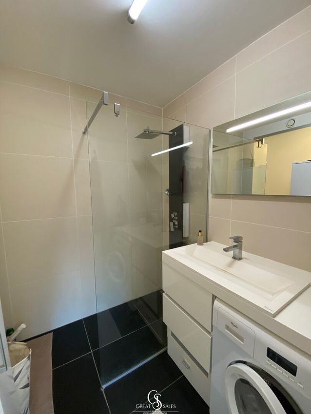 In einem sehr ansprechenden, exklusiven Design sind die Bad-Armaturen sowie das getrennte WC gehalten. Das Bad beinhaltet eine begehbare Dusche, ein Waschbecken mit Spiegel und Verbau sowie einen Waschmaschinen-Anschluss.